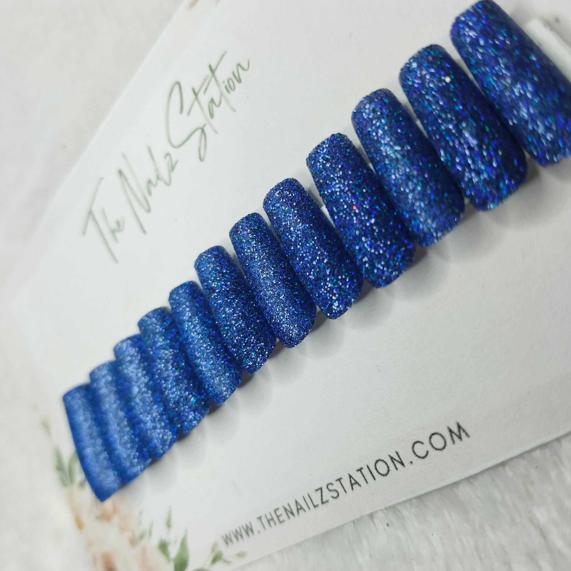 The NailzStation Glossy Blue Glitter Press on Fake Artificial Nails Set with glue, filer, sticker application kit // 1497