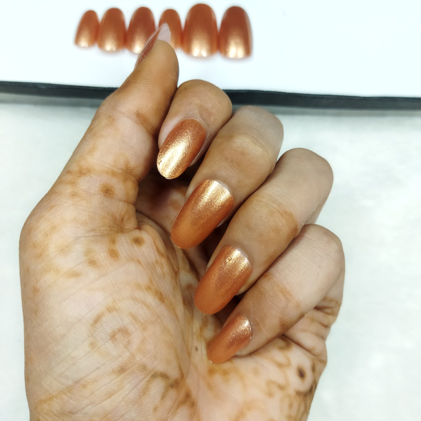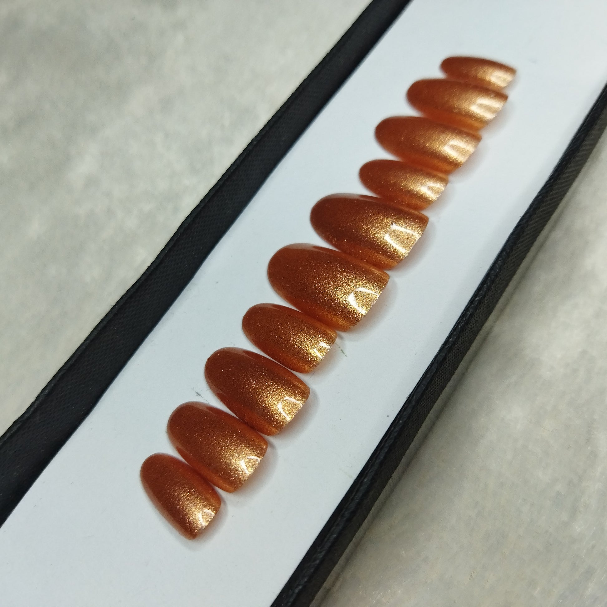 The NailzStation Glossy Bronze Press on Fake Artificial Nails Set with glue, filer, sticker application kit // 1277
