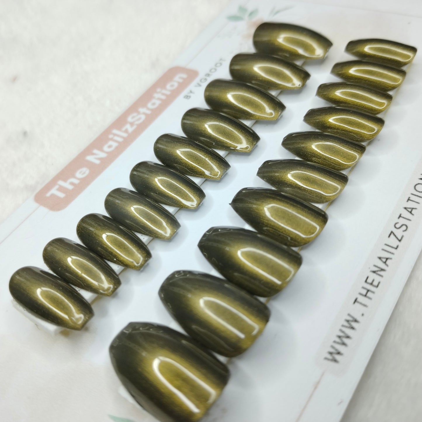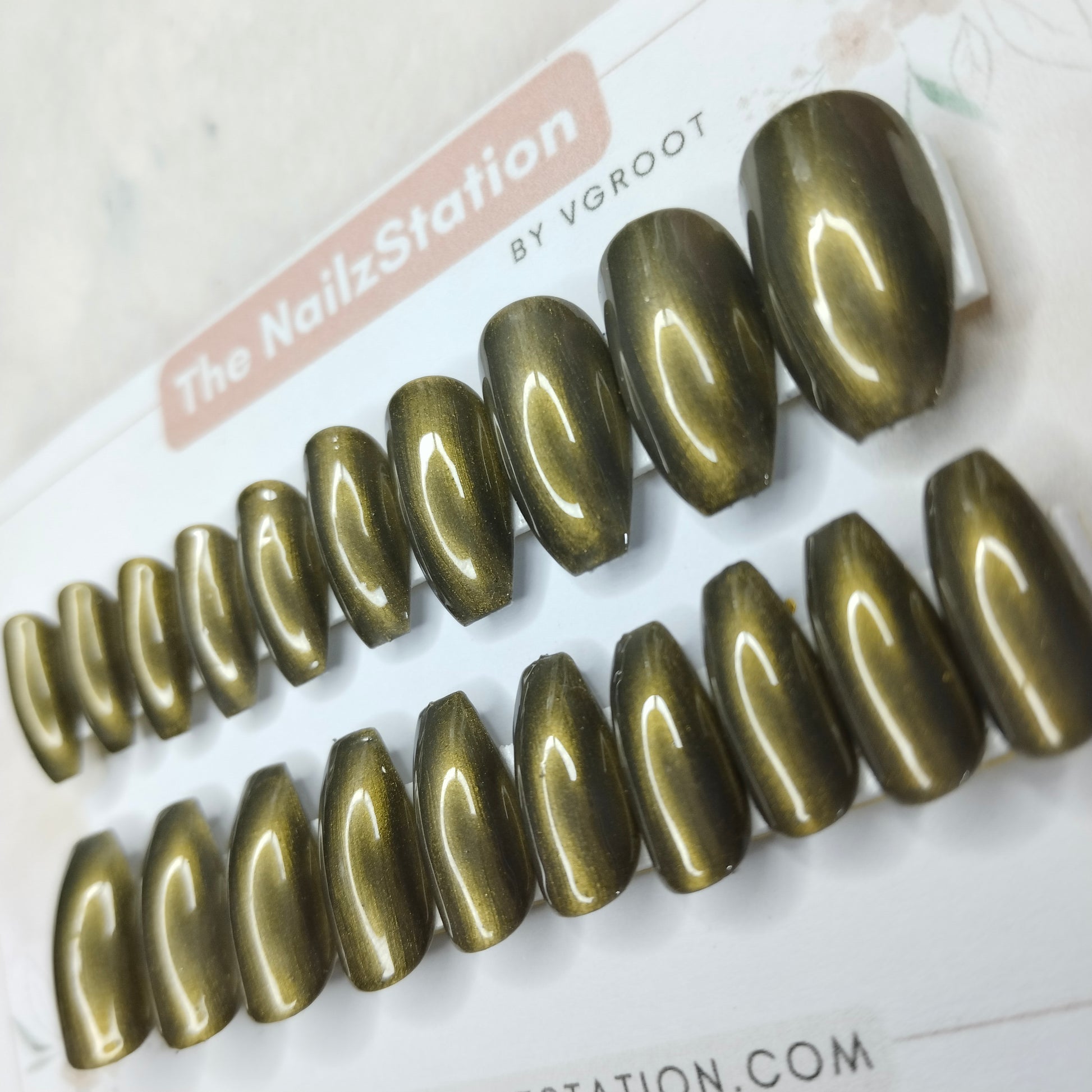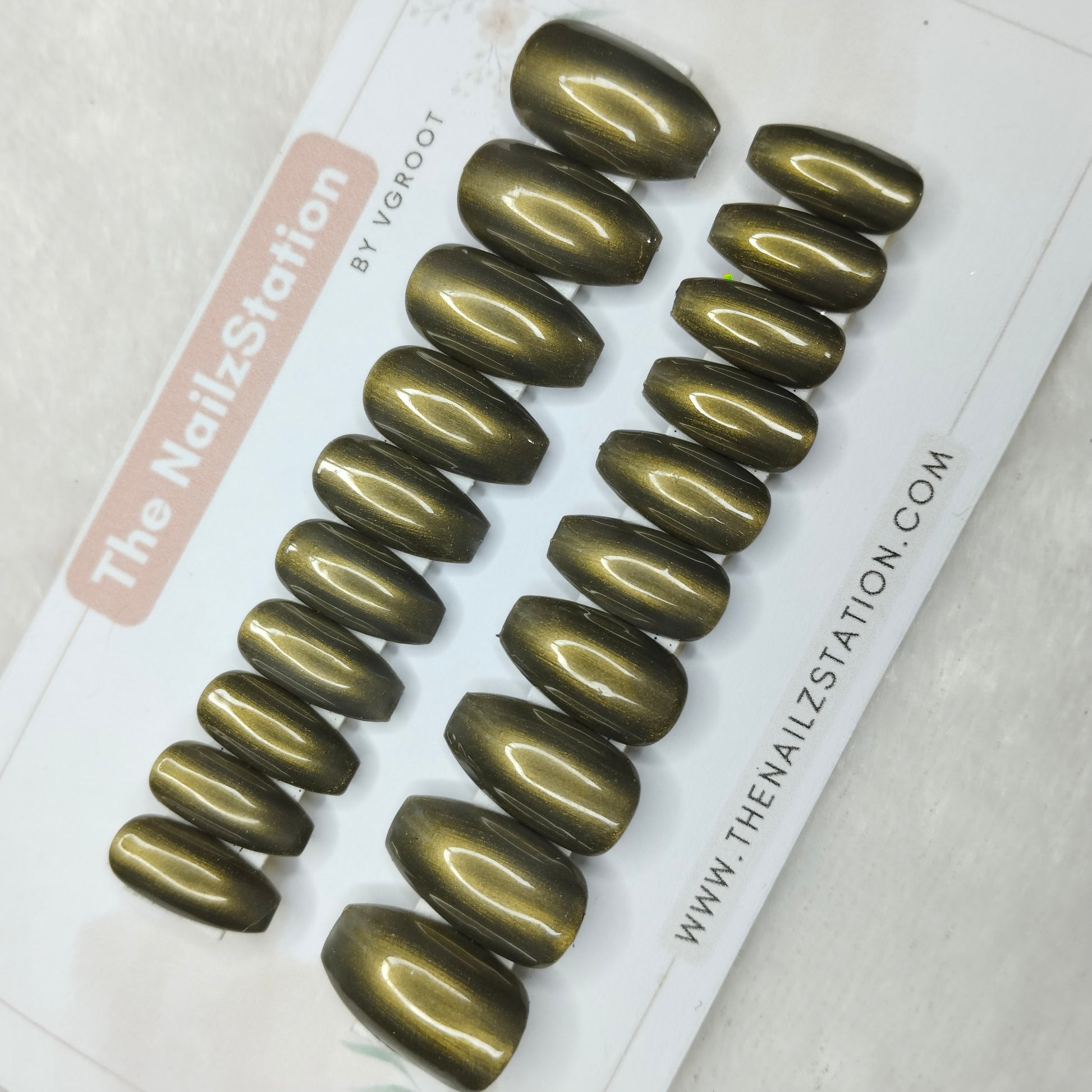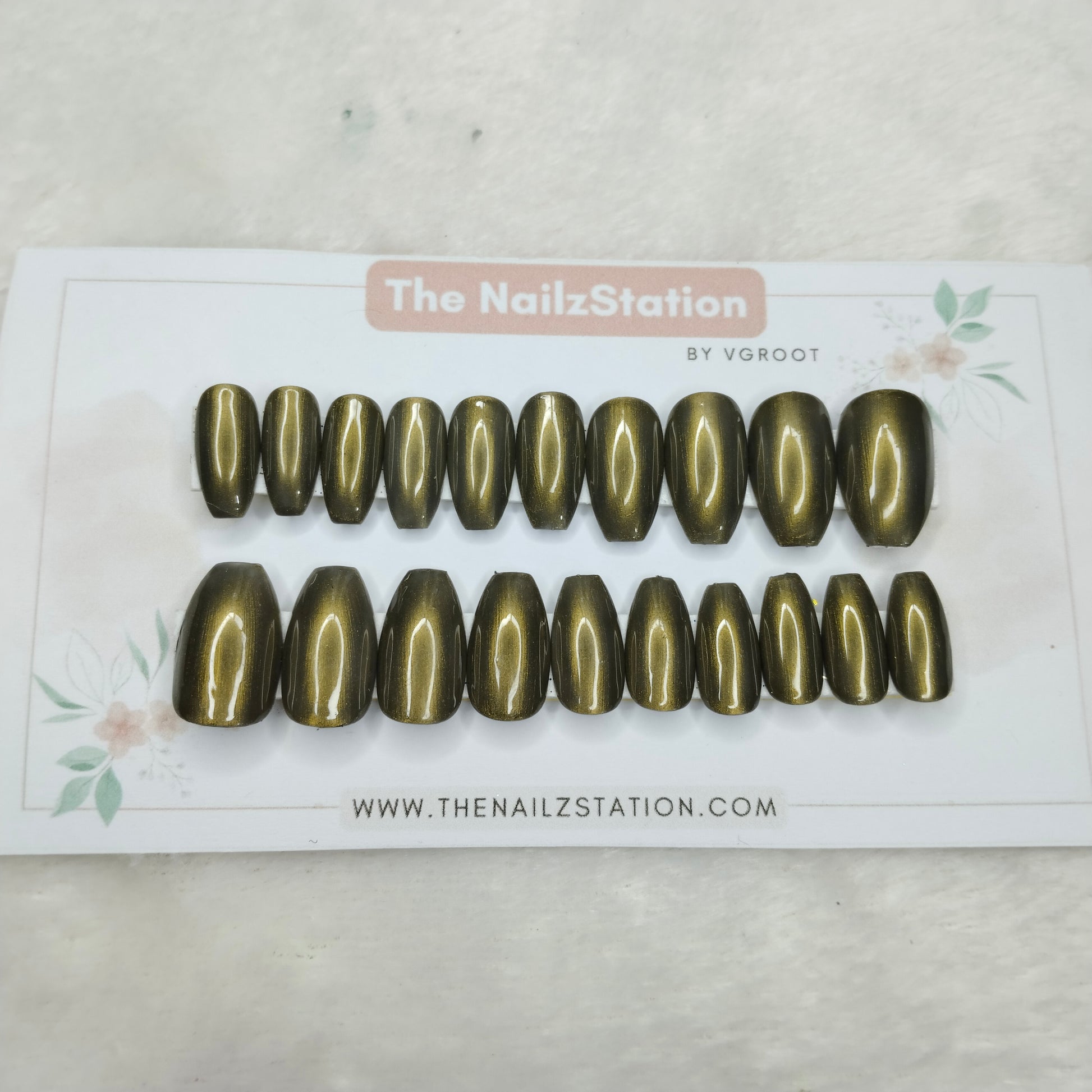 The NailzStation Glossy Brown Chrome Press on Fake Artificial Nails Set with glue, filer, sticker application kit // 1468