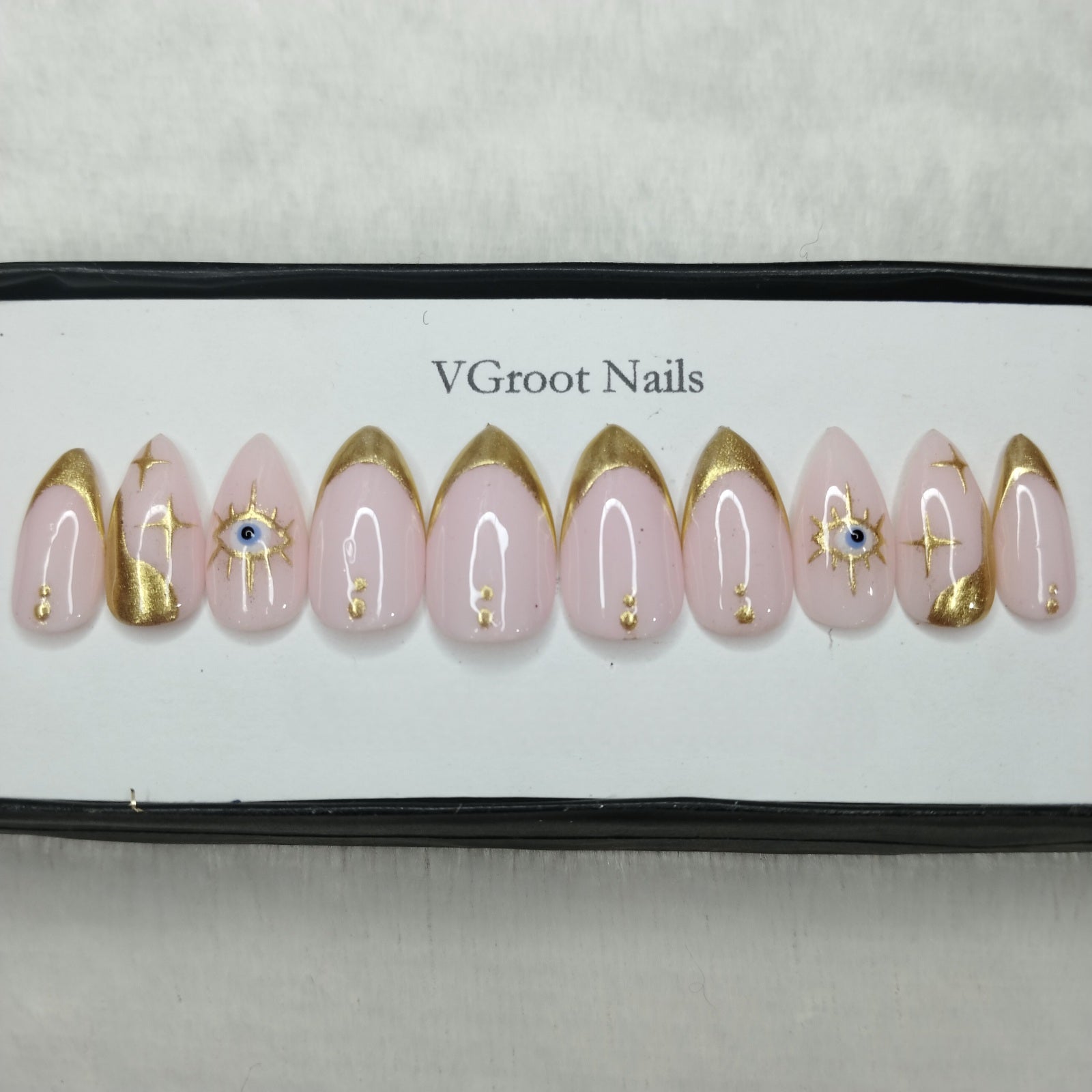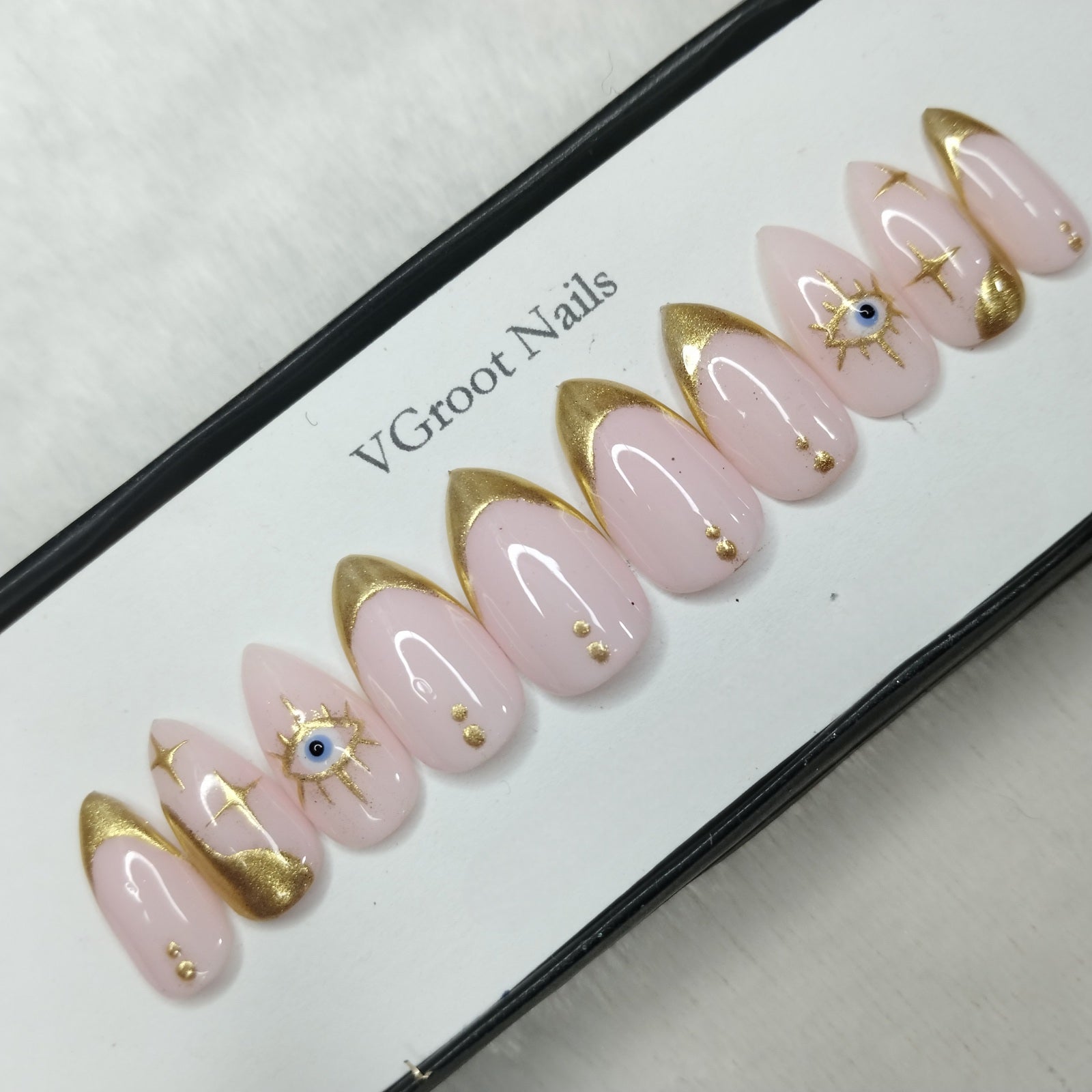 The NailzStation Glossy Chrome Evil Eye Press on Fake Artificial Nails Set with glue, filer, sticker application kit // 1123