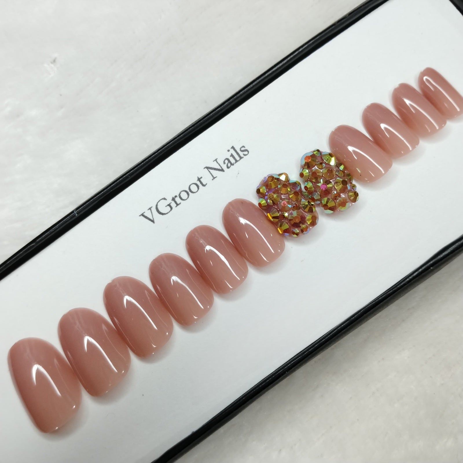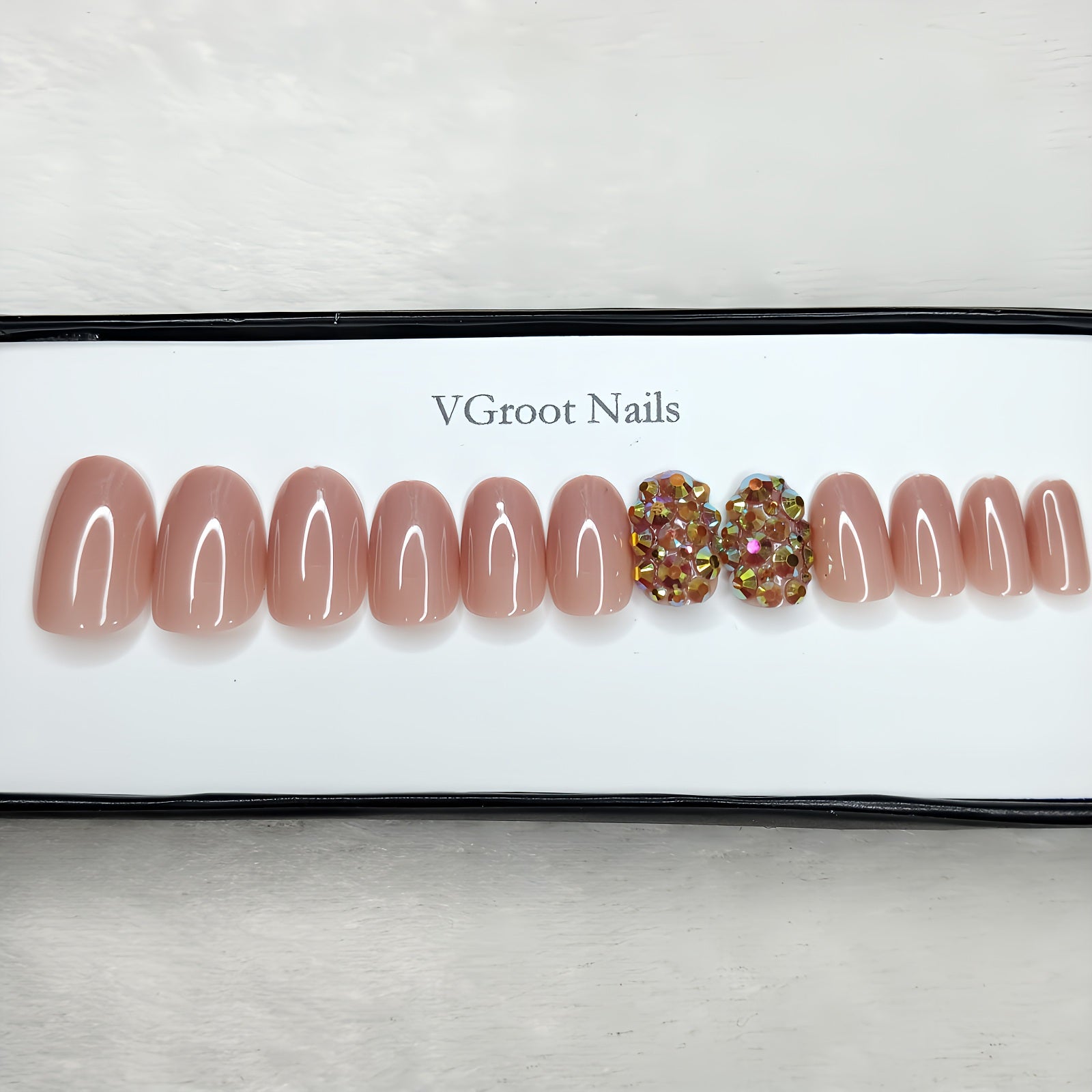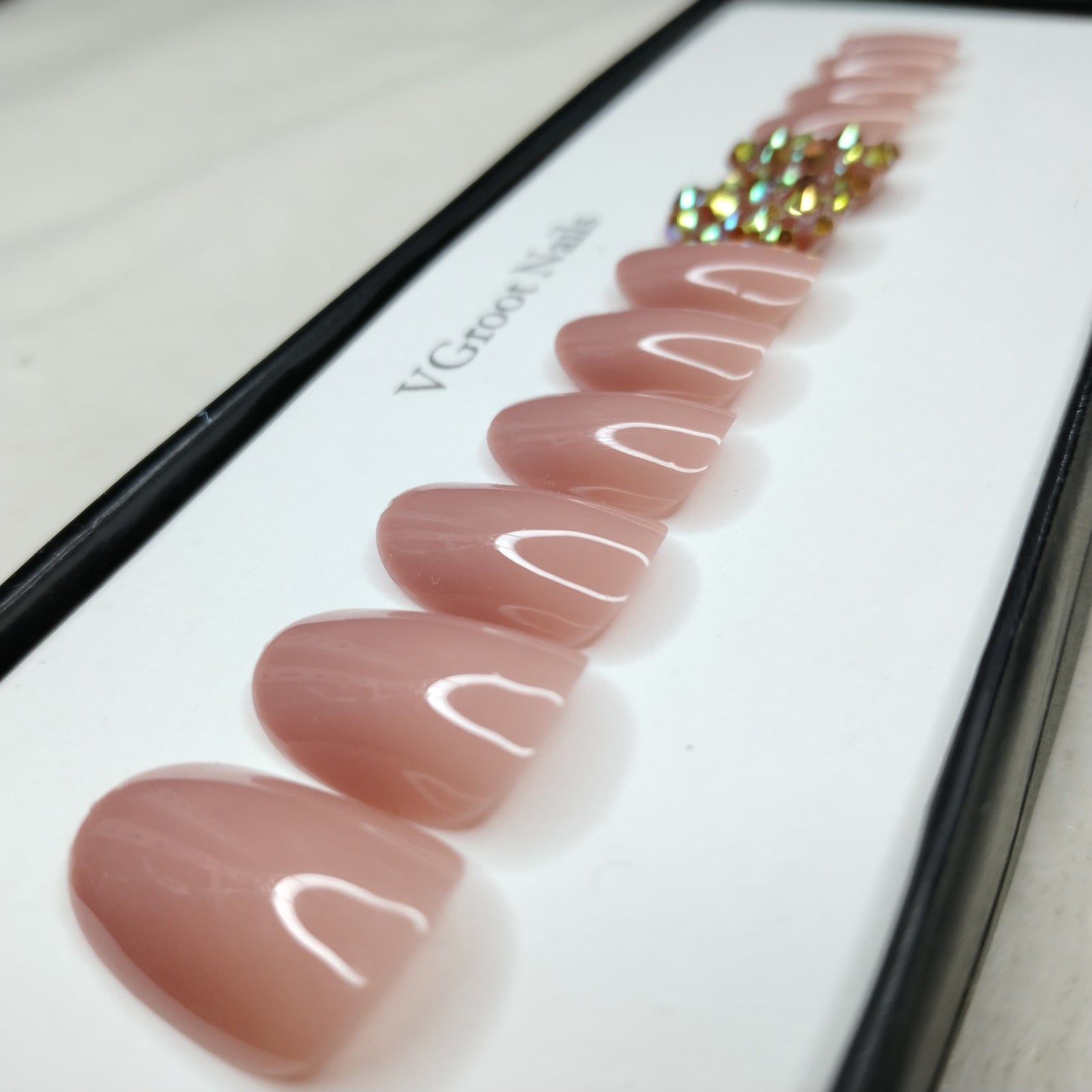 The NailzStation Glossy Dark Nude Studded Press on Fake Artificial Nails Set with glue, filer, sticker application kit // 1127