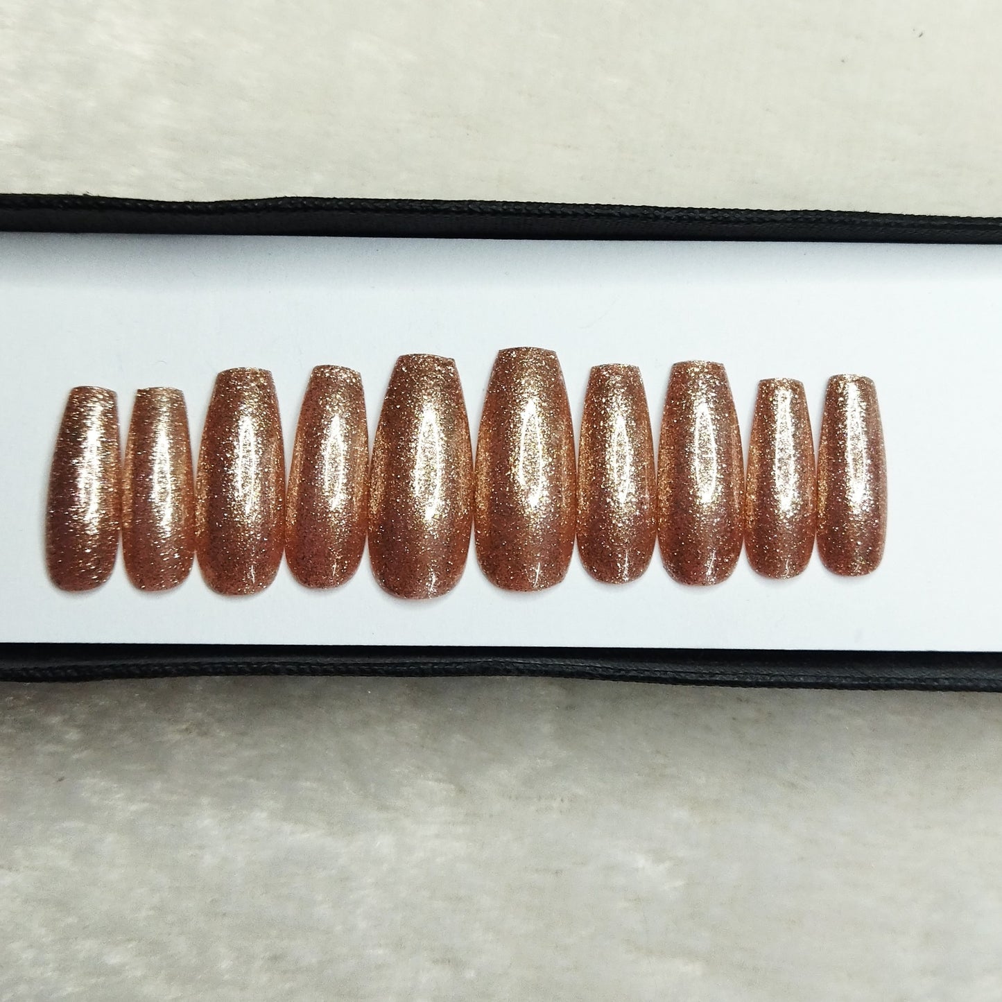 The NailzStation Glossy Golden Press on Fake Artificial Nails Set with glue, filer, sticker application kit // 1285