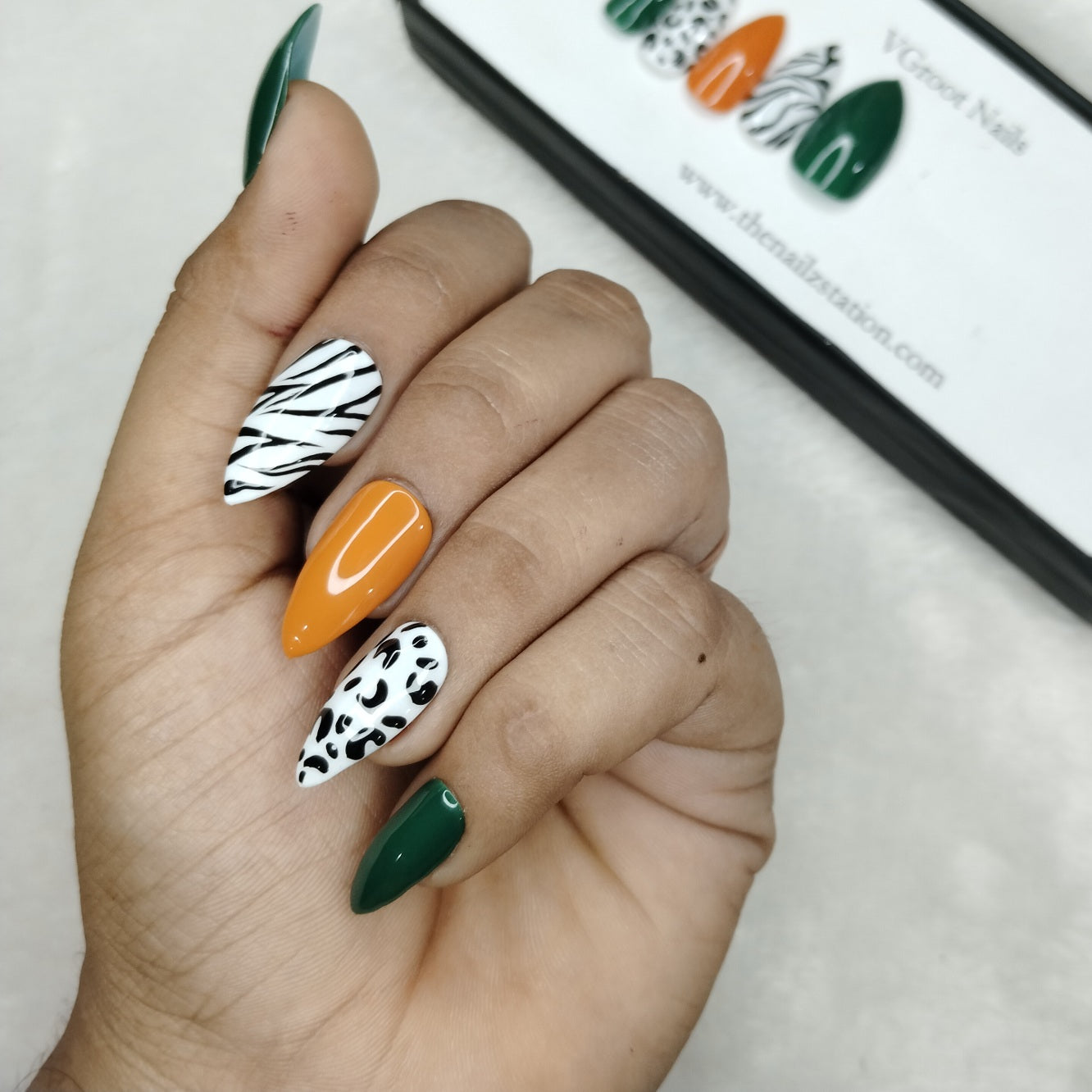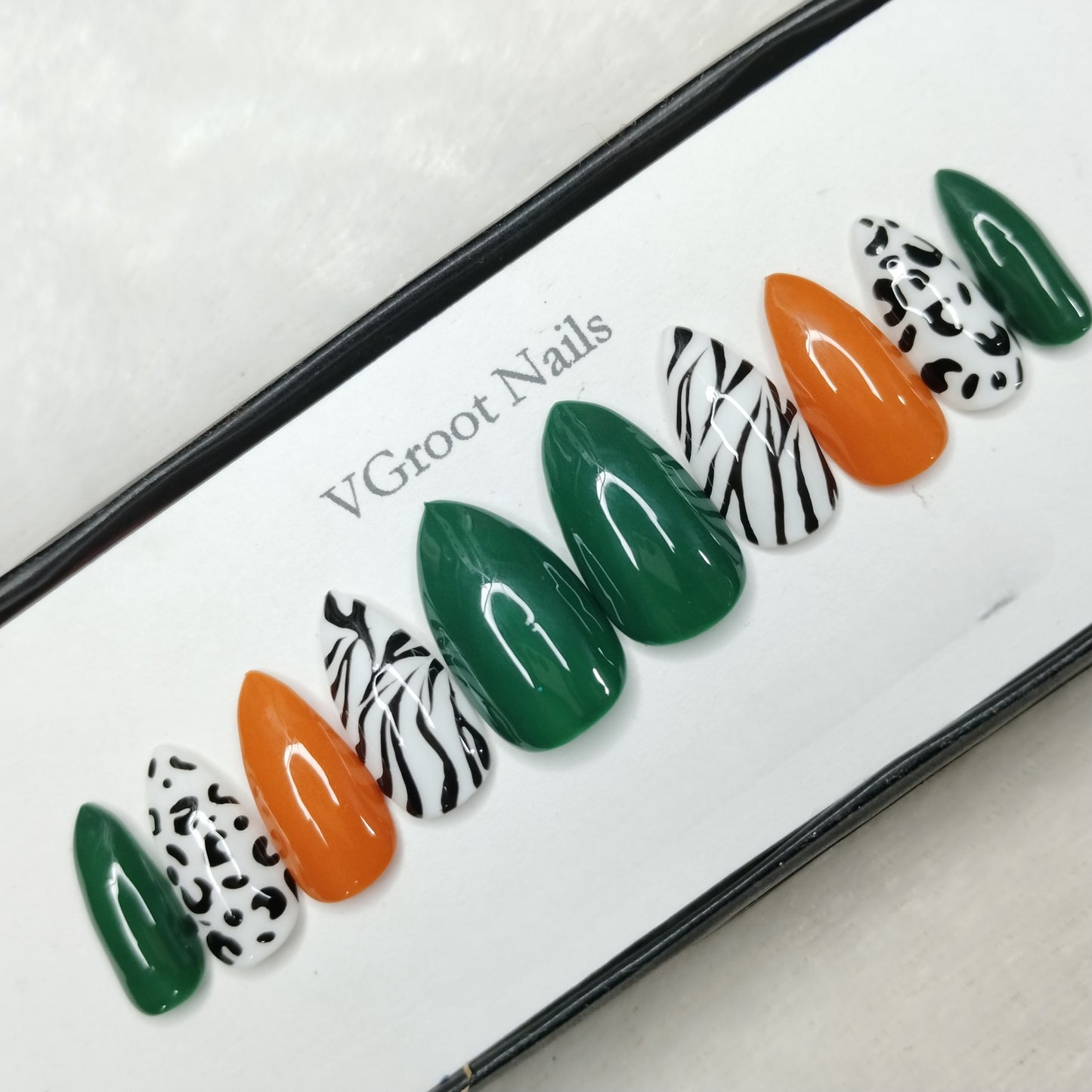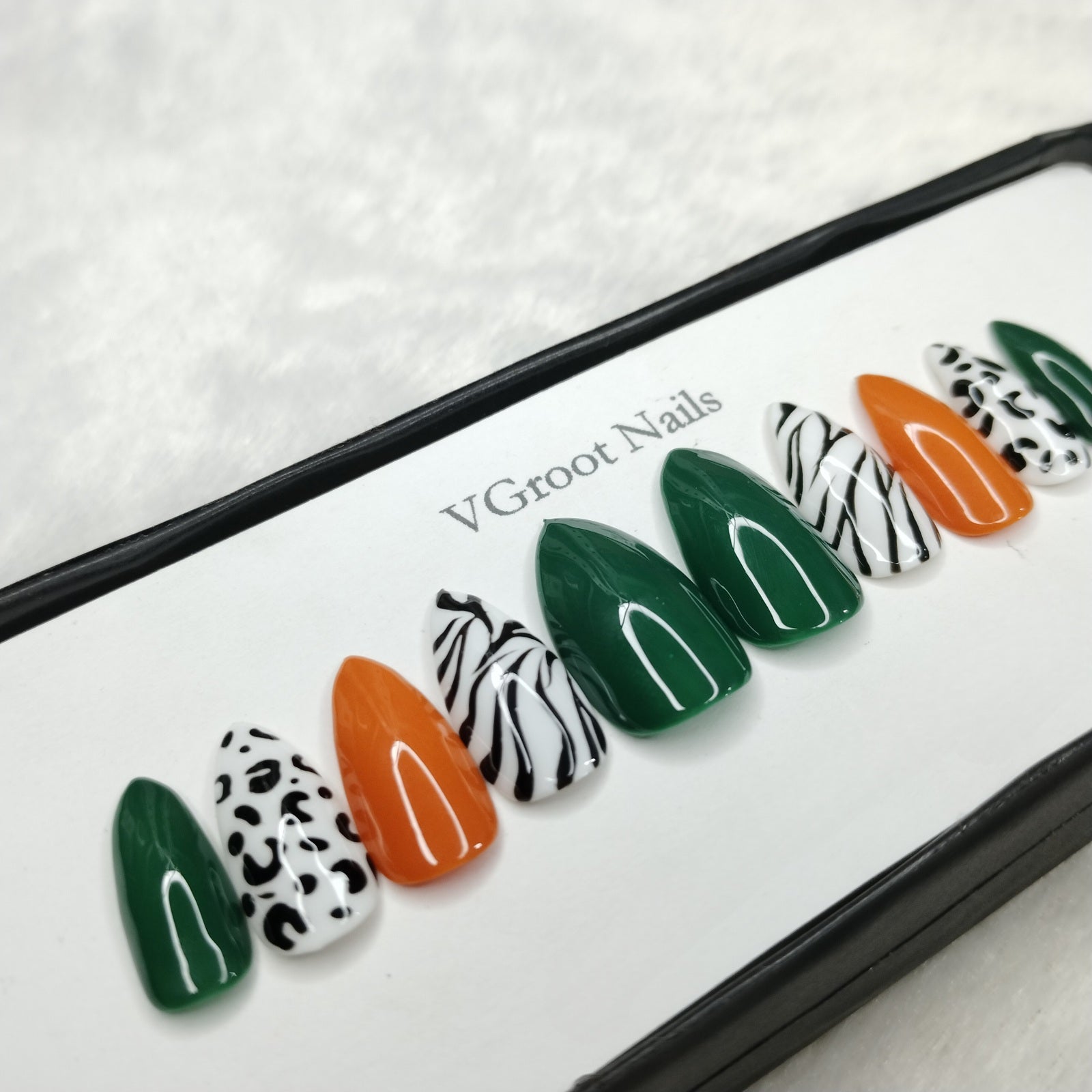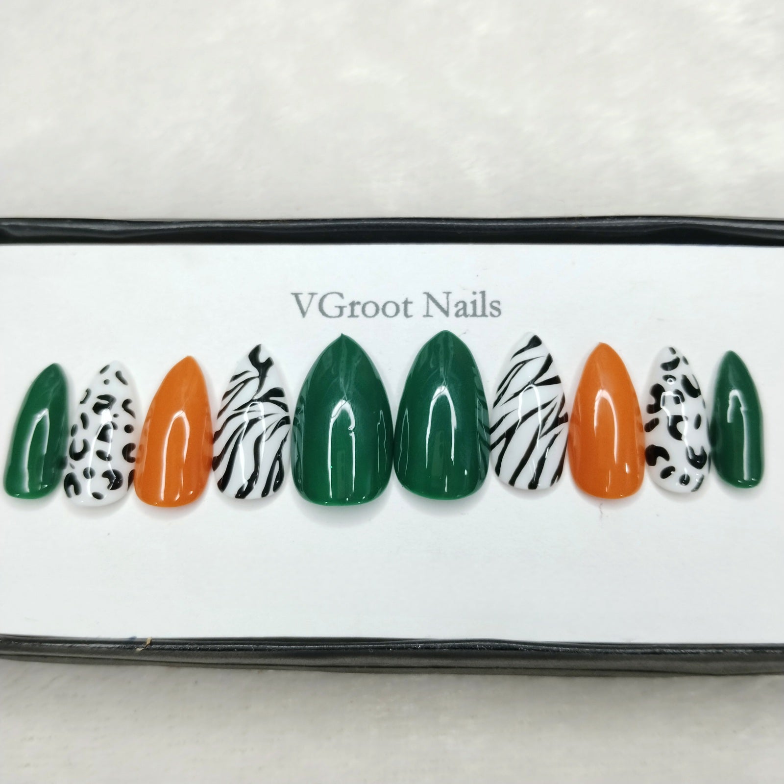 The NailzStation Glossy Green Animal Print Press on Fake Artificial Nails Set with glue, filer, sticker application kit // 1101