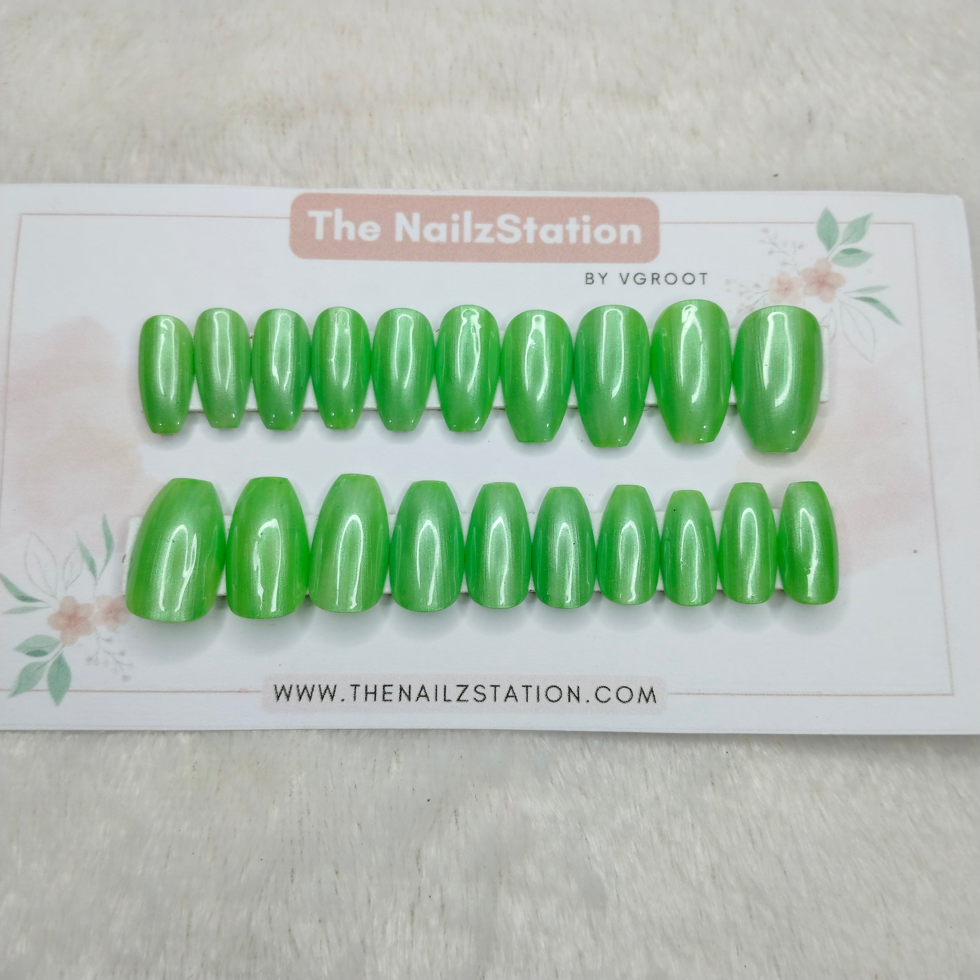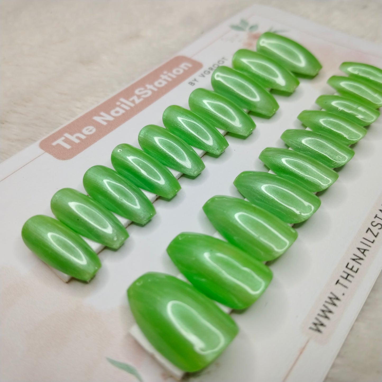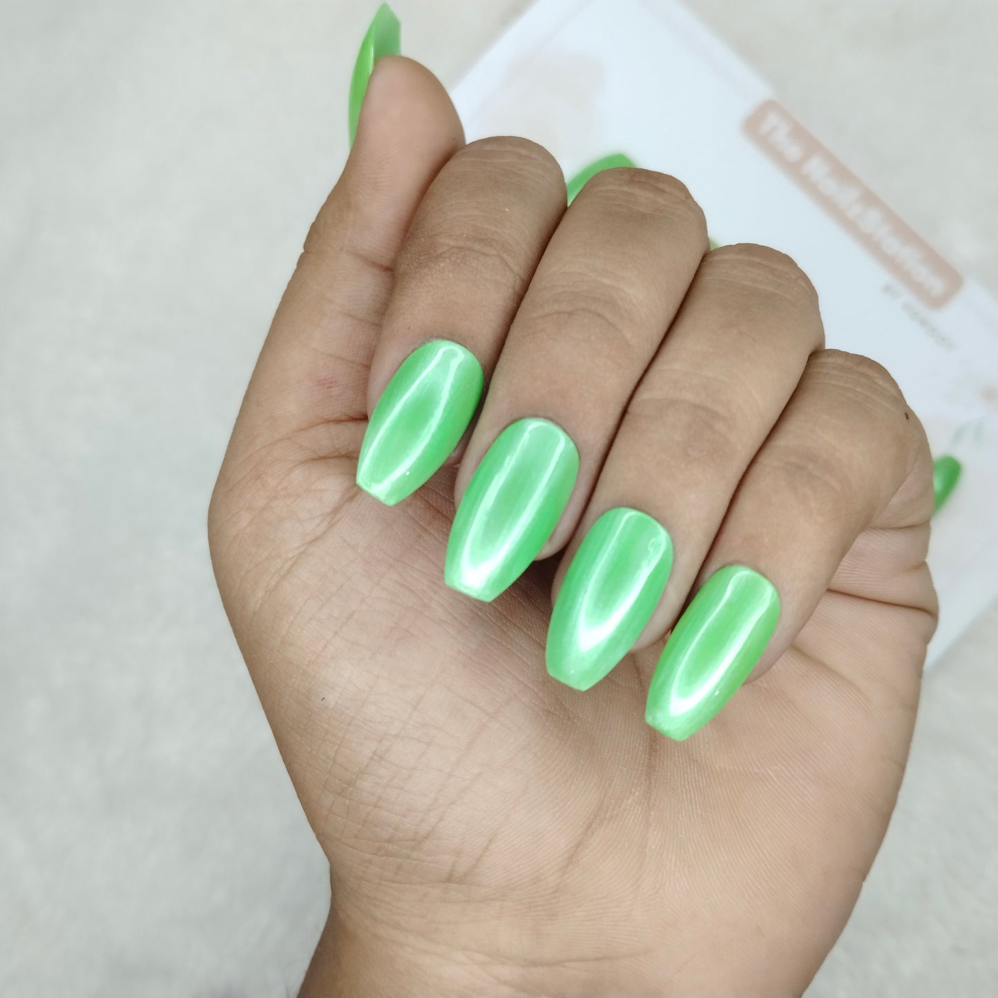 The NailzStation Glossy Green Chrome Press on Fake Artificial Nails Set with glue, filer, sticker application kit // 1510