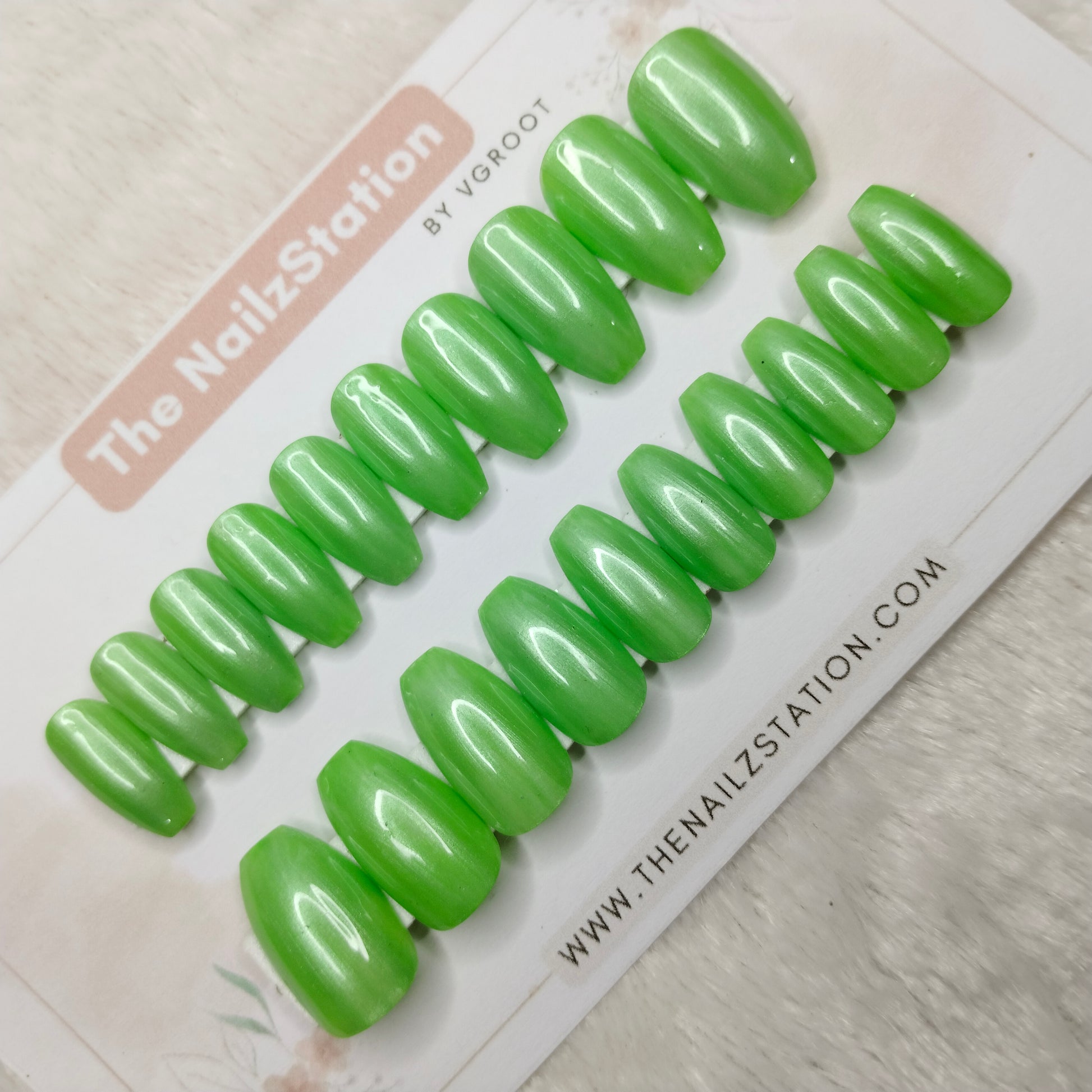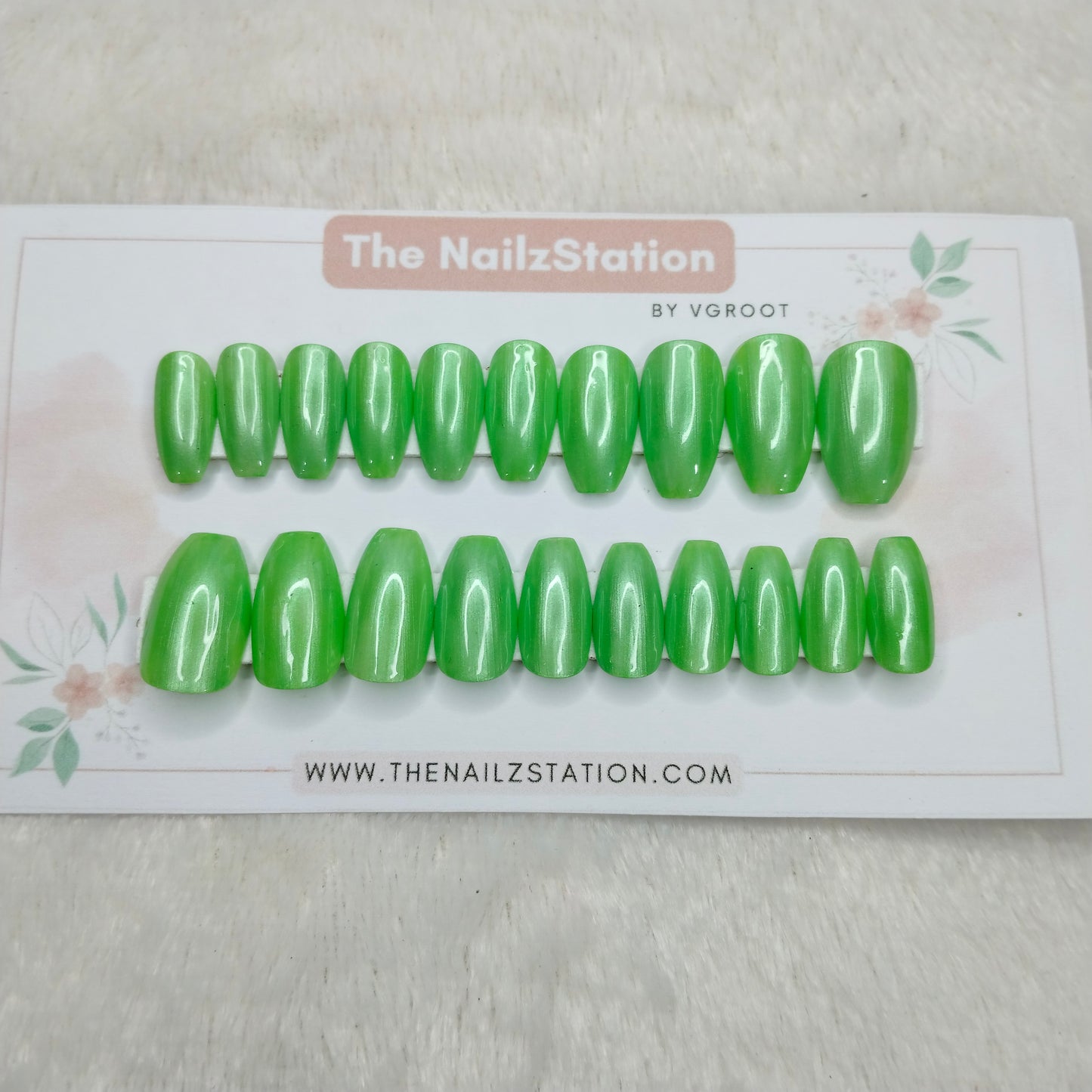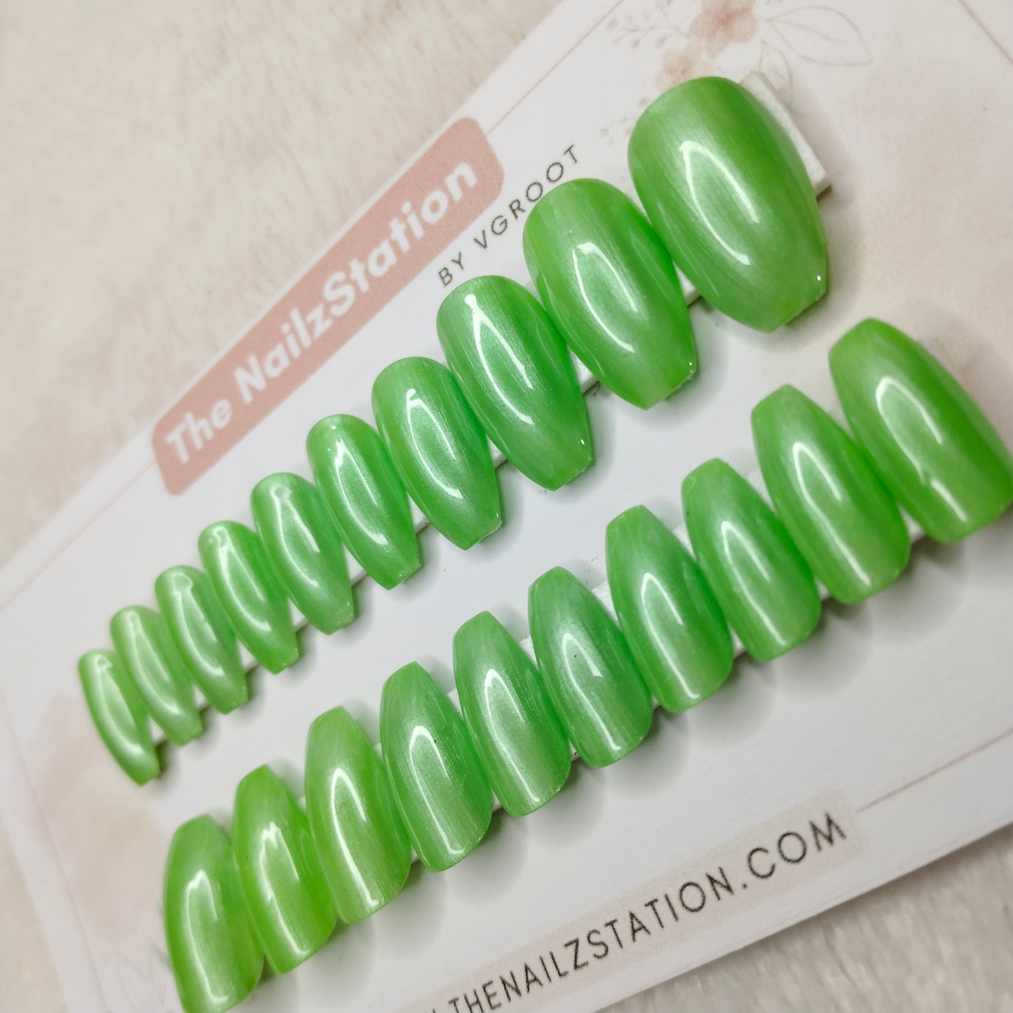 The NailzStation Glossy Green Chrome Press on Fake Artificial Nails Set with glue, filer, sticker application kit // 1510