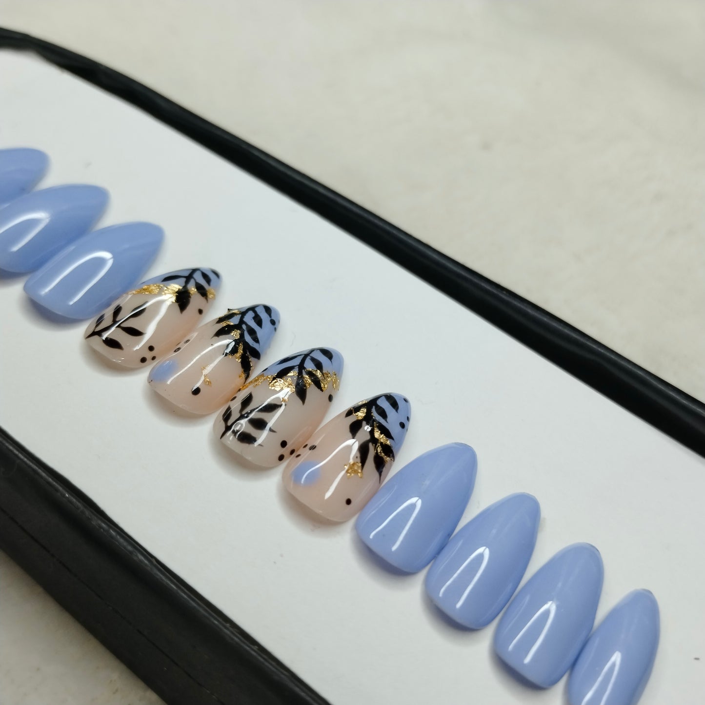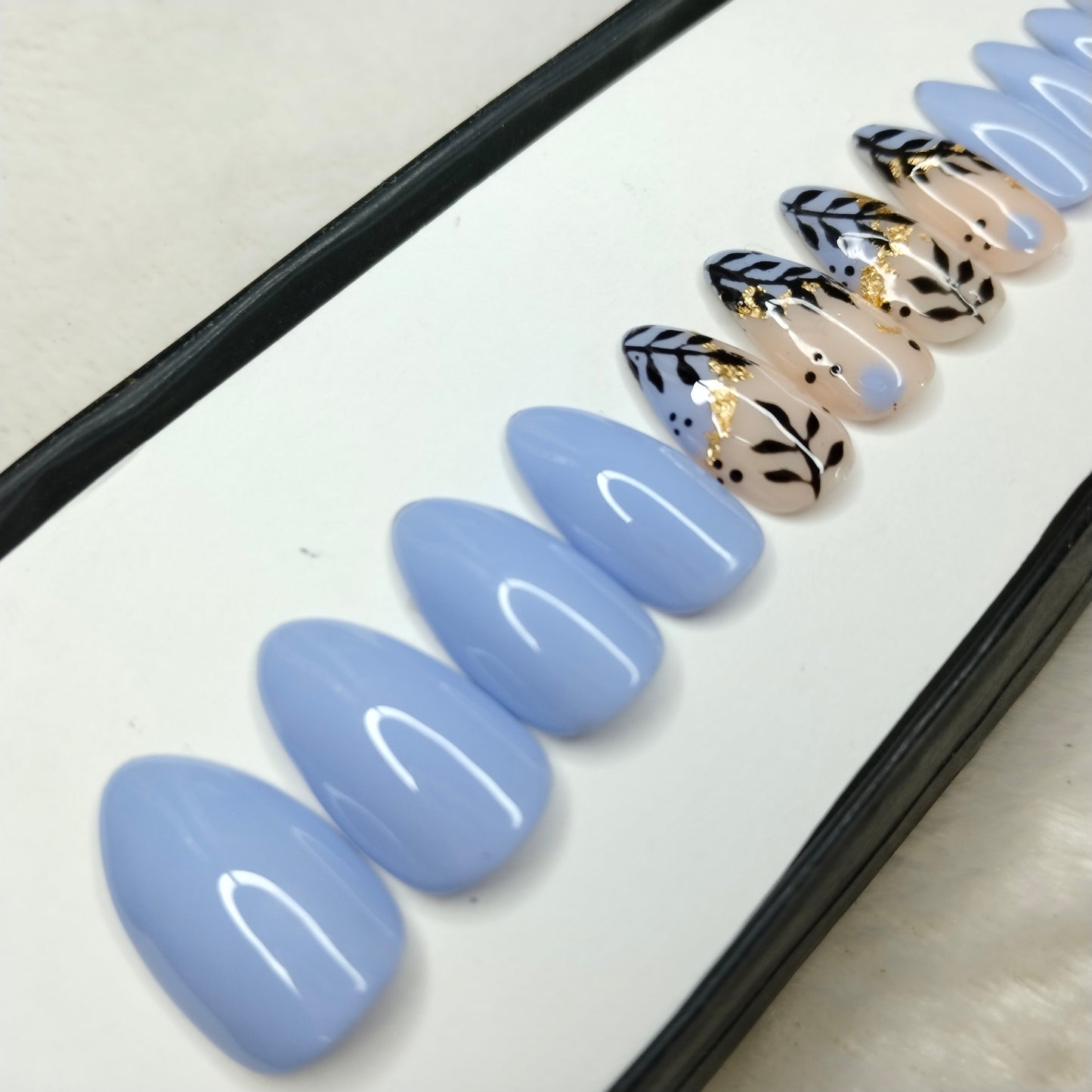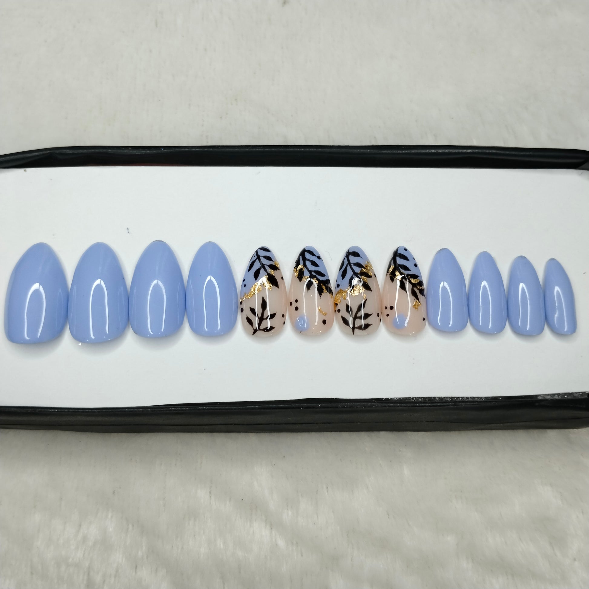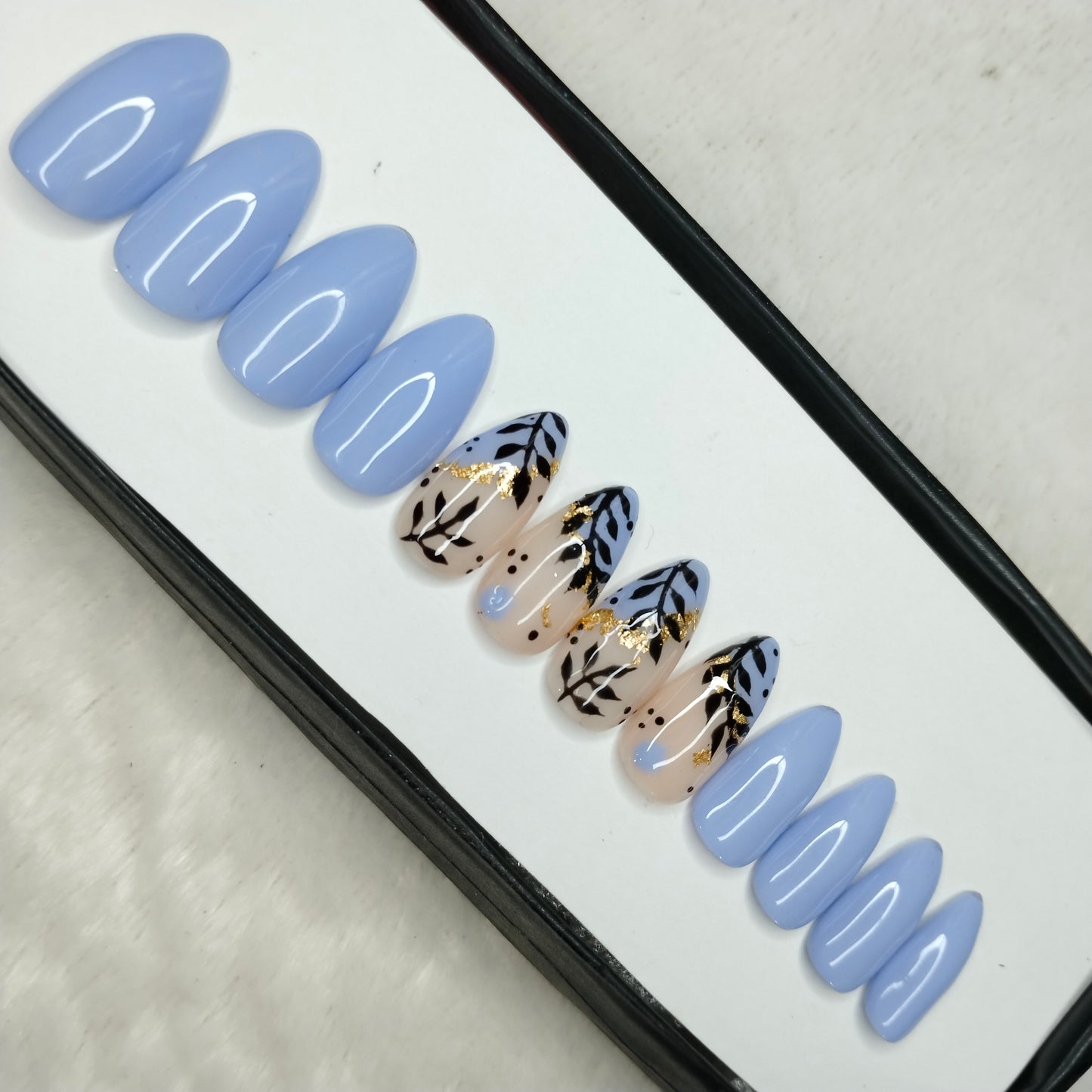 The NailzStation Glossy Light Blue Floral Press on Fake Artificial Nails Set with glue, filer, sticker application kit // 1218