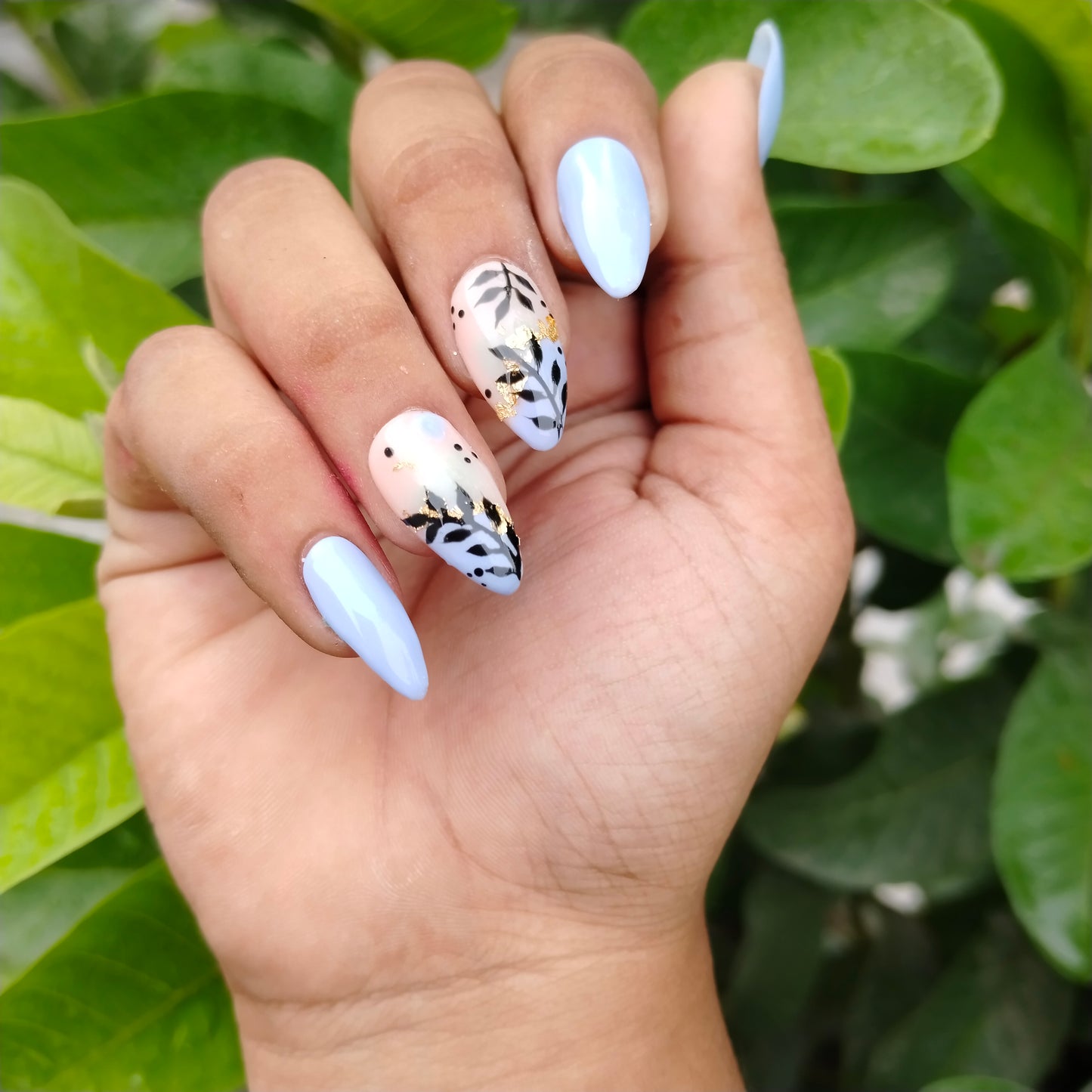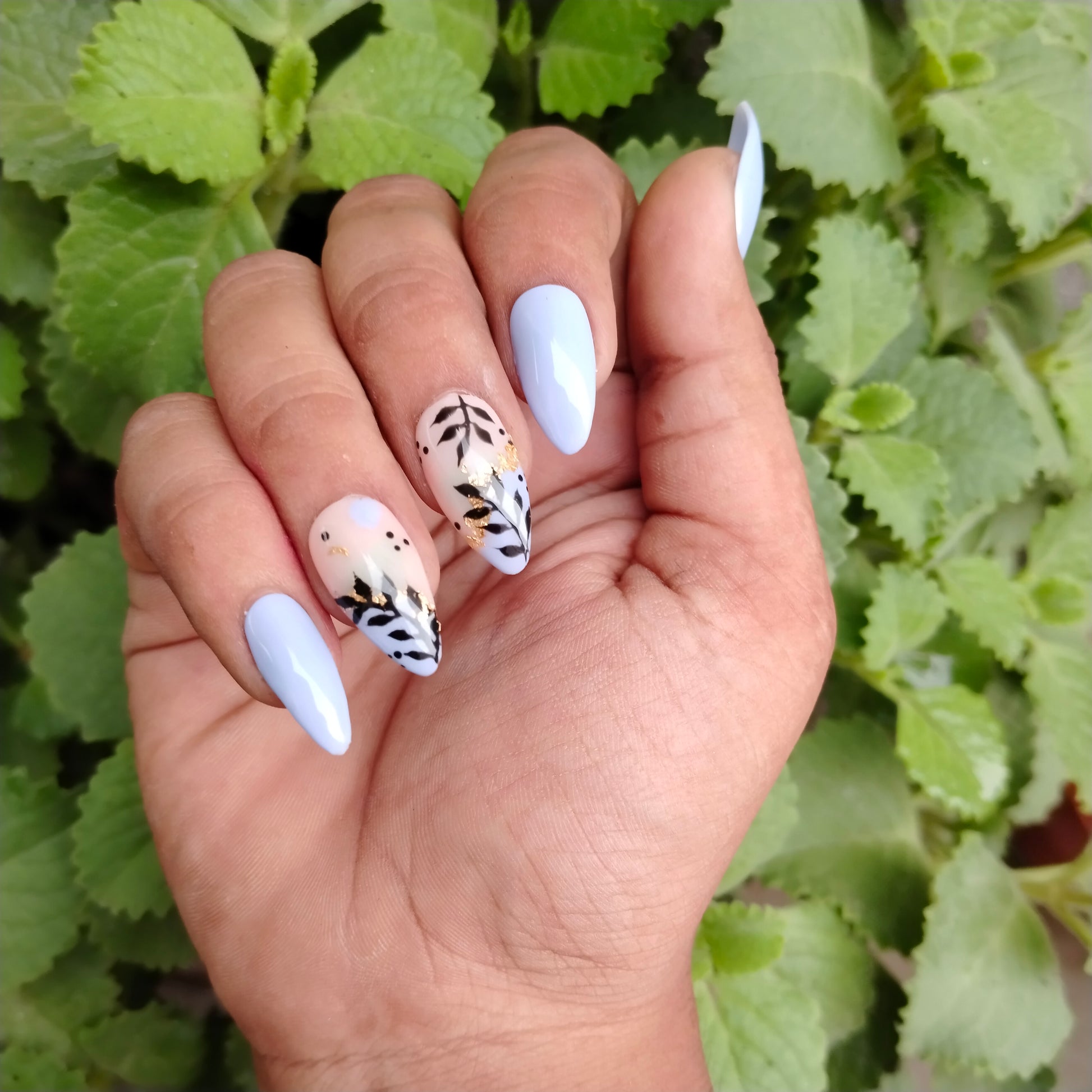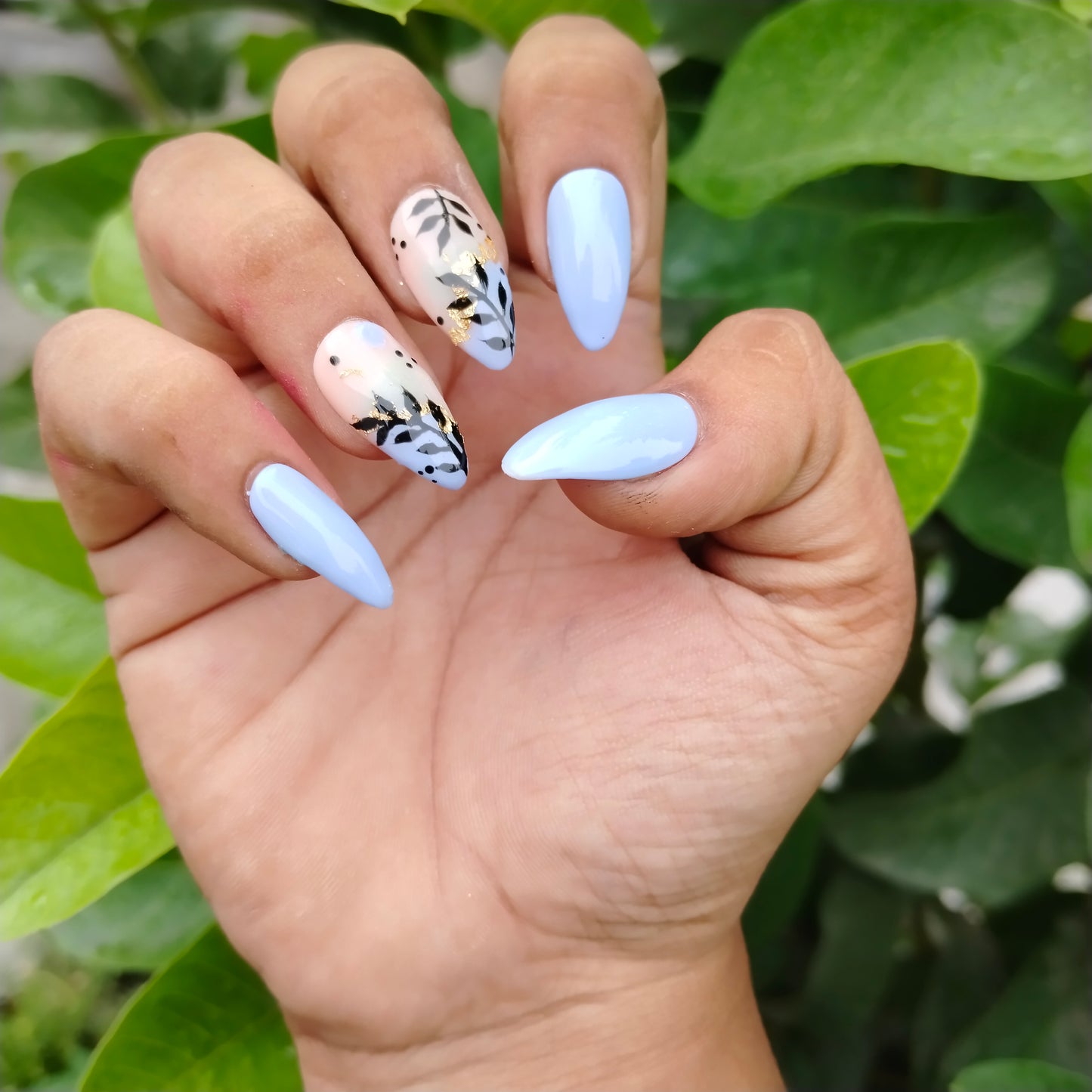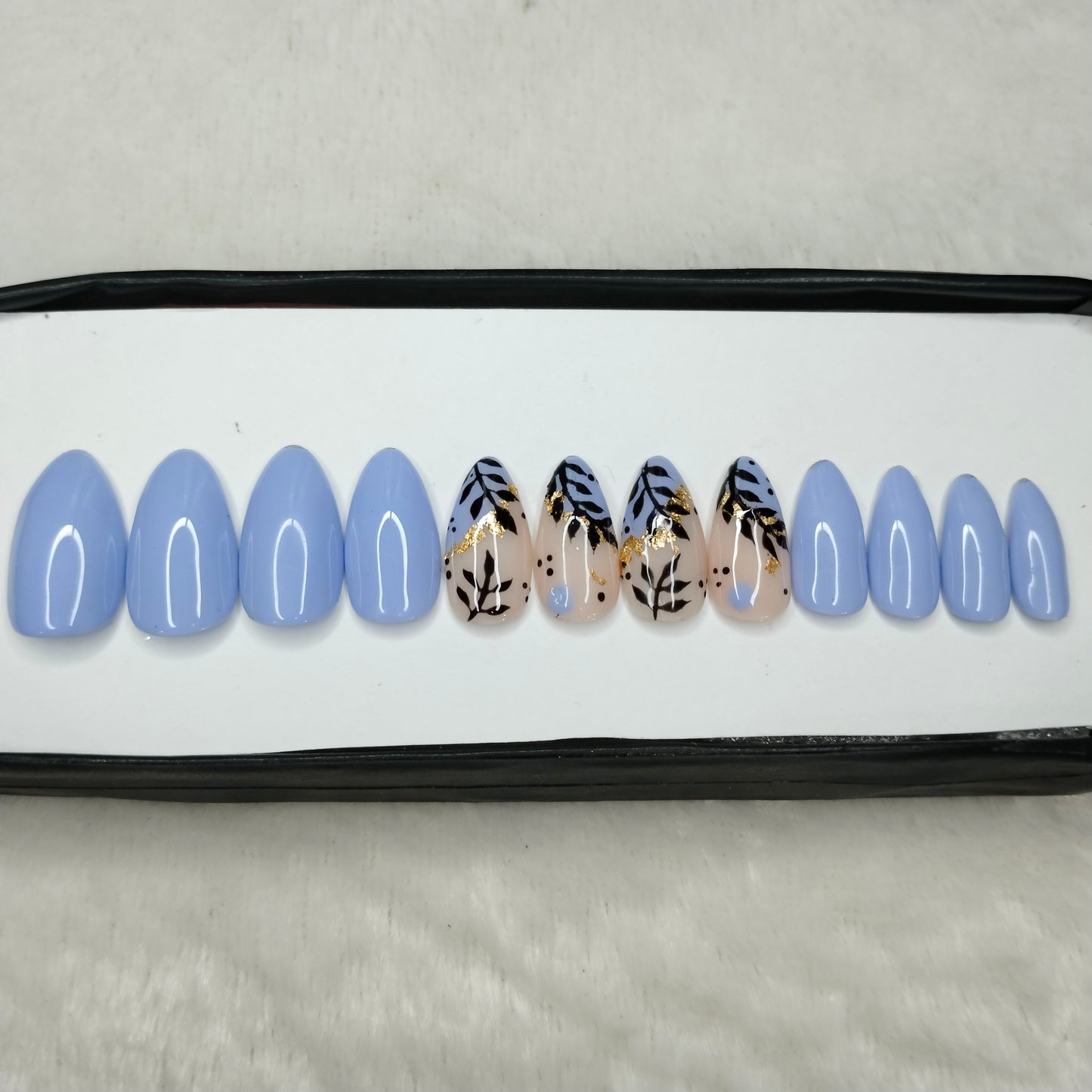 The NailzStation Glossy Light Blue Floral Press on Fake Artificial Nails Set with glue, filer, sticker application kit // 1218