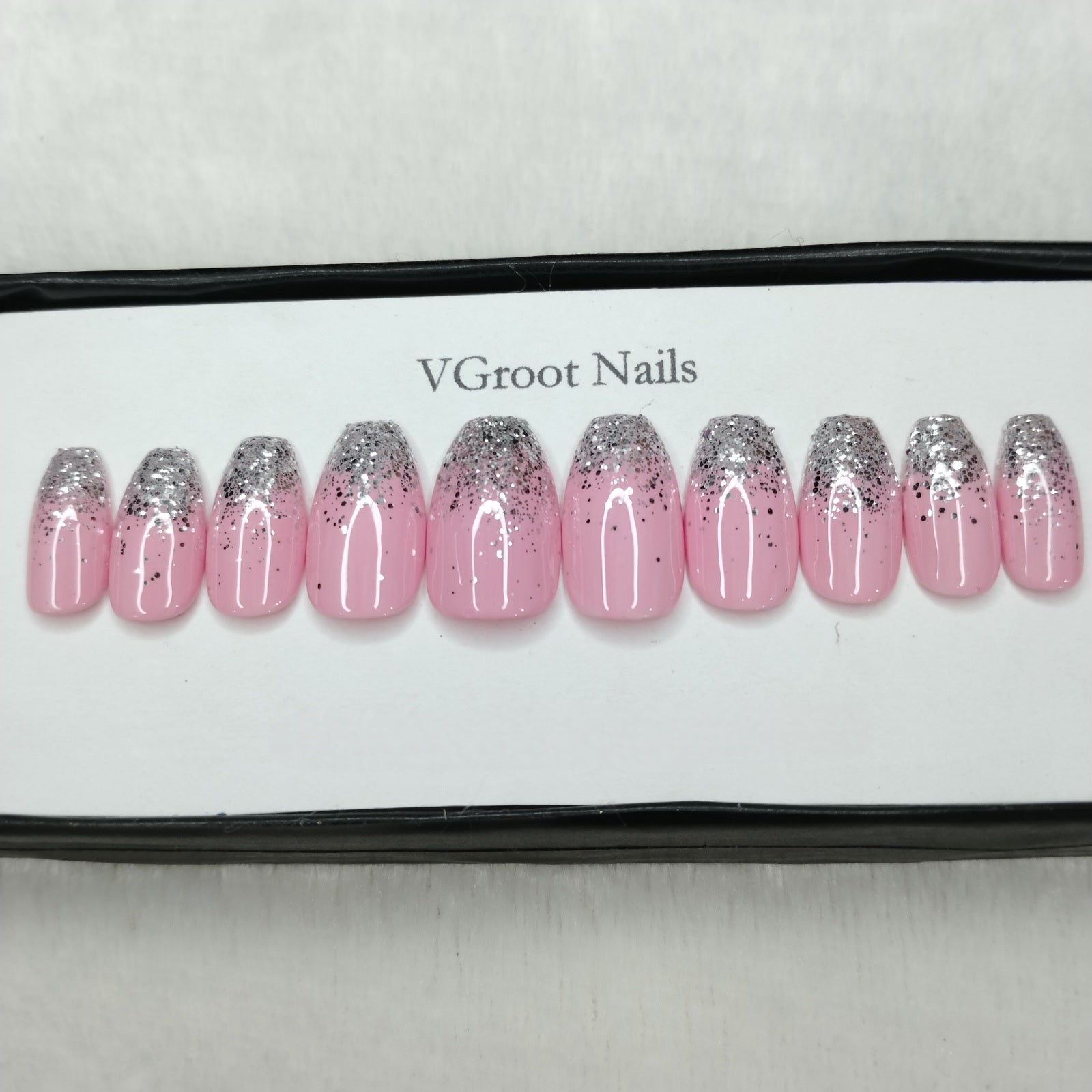 The NailzStation Glossy Light Pink Glitter Ombre Press on Fake Artificial Nails Set with glue, filer, sticker application kit // 1124