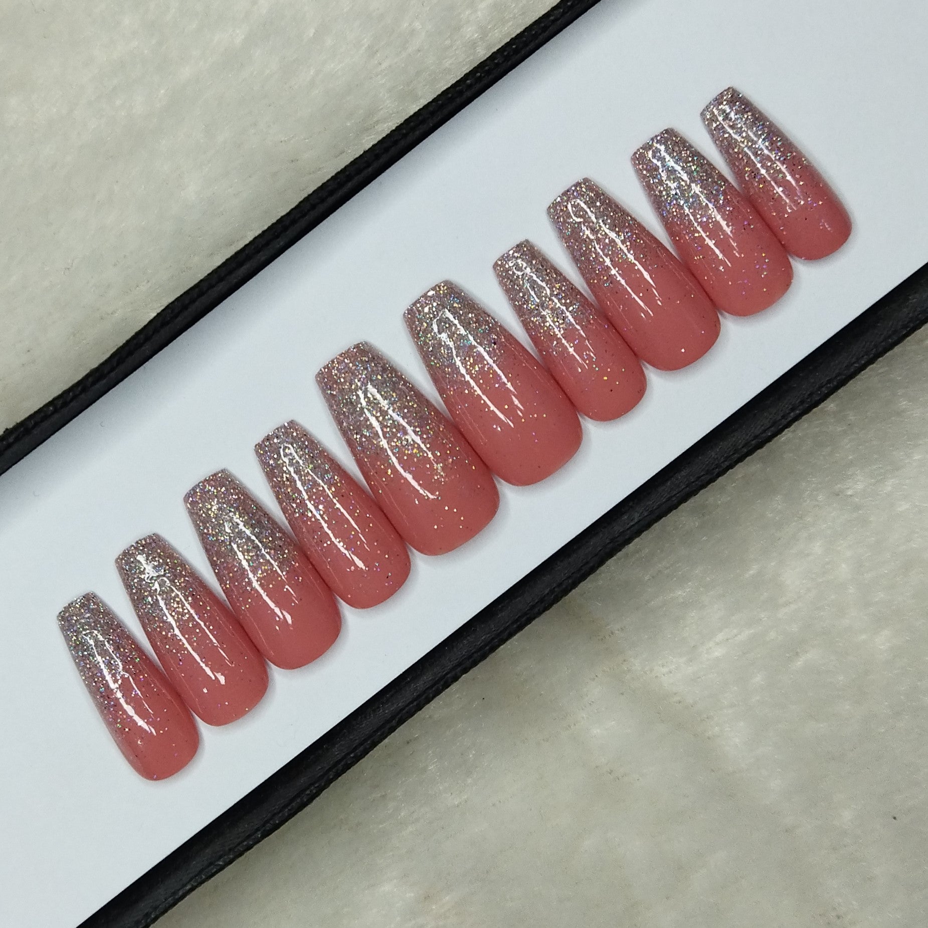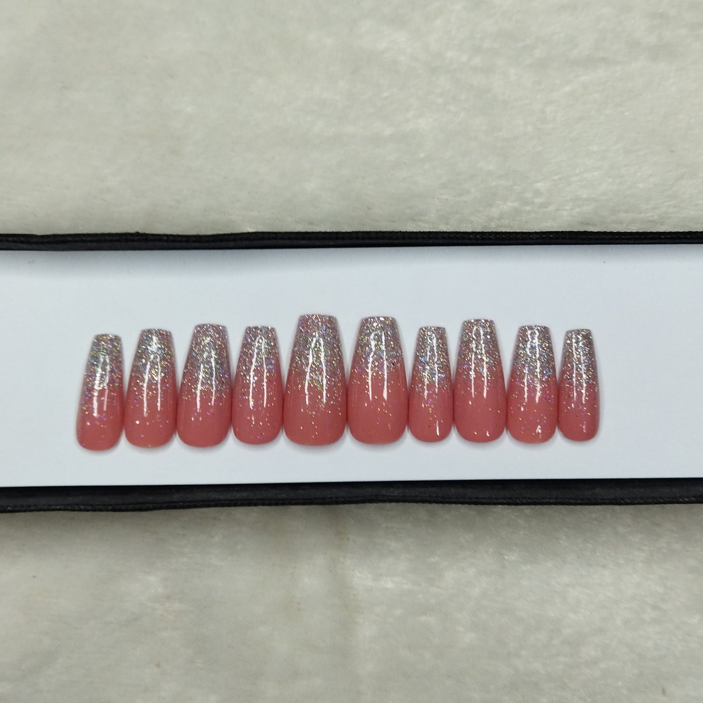 The NailzStation Glossy Light Pink Glitter Ombre Press on Fake Artificial Nails Set with glue, filer, sticker application kit // 1306