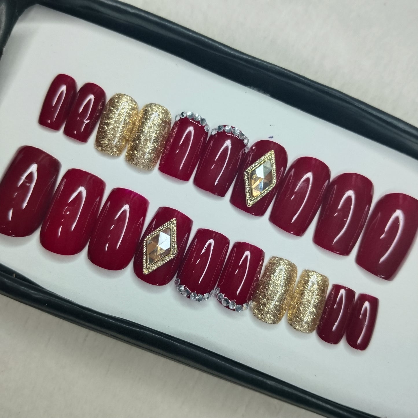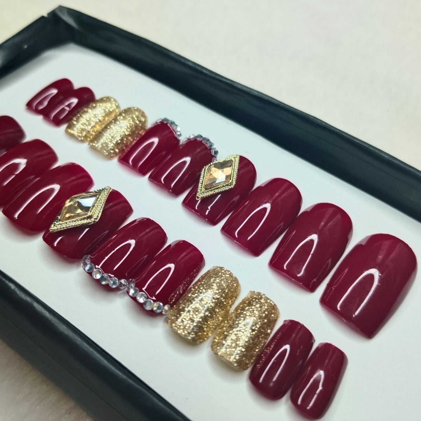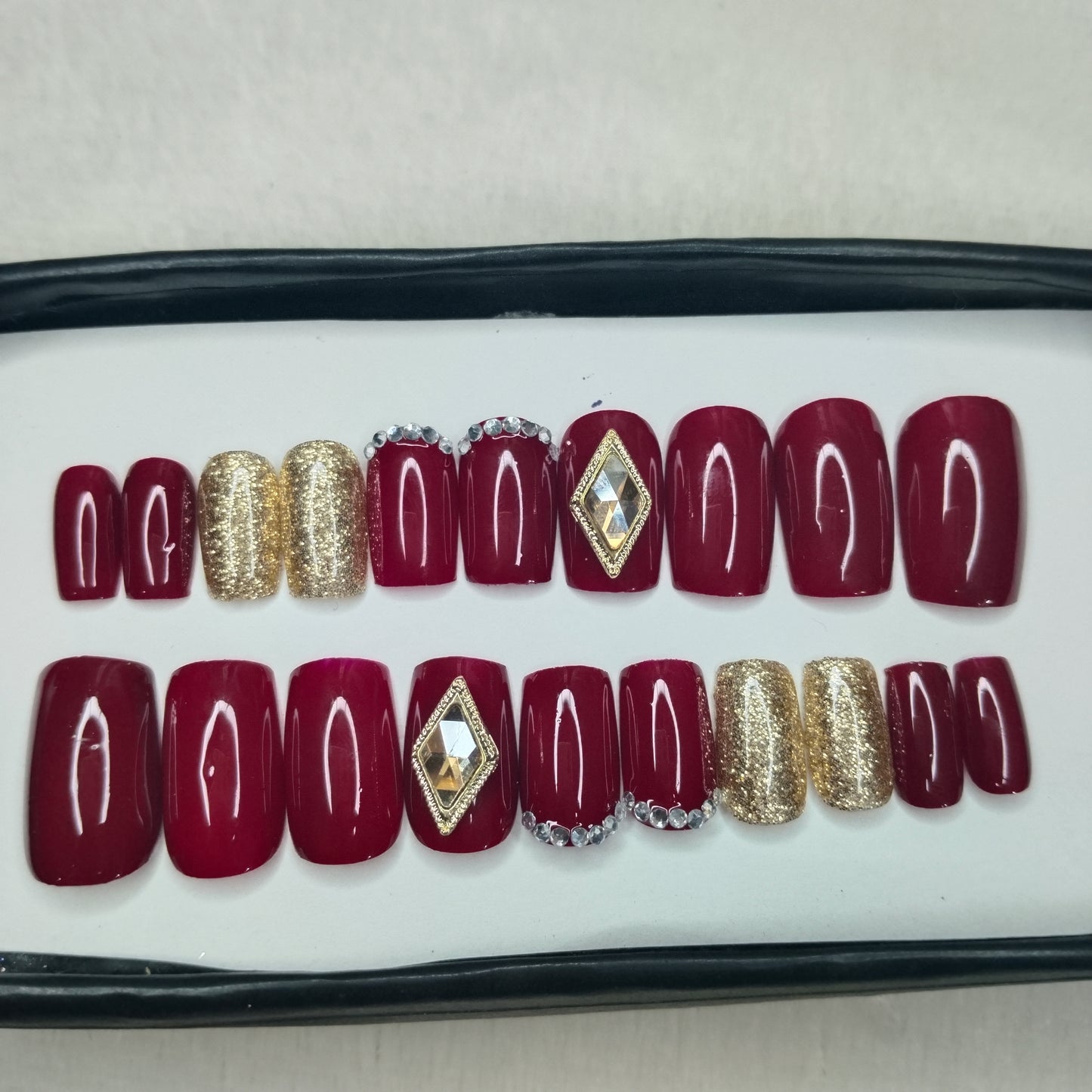 The NailzStation Glossy Maroon 3D Studded Press on Fake Artificial Nails Set with glue, filer, sticker application kit // 1194