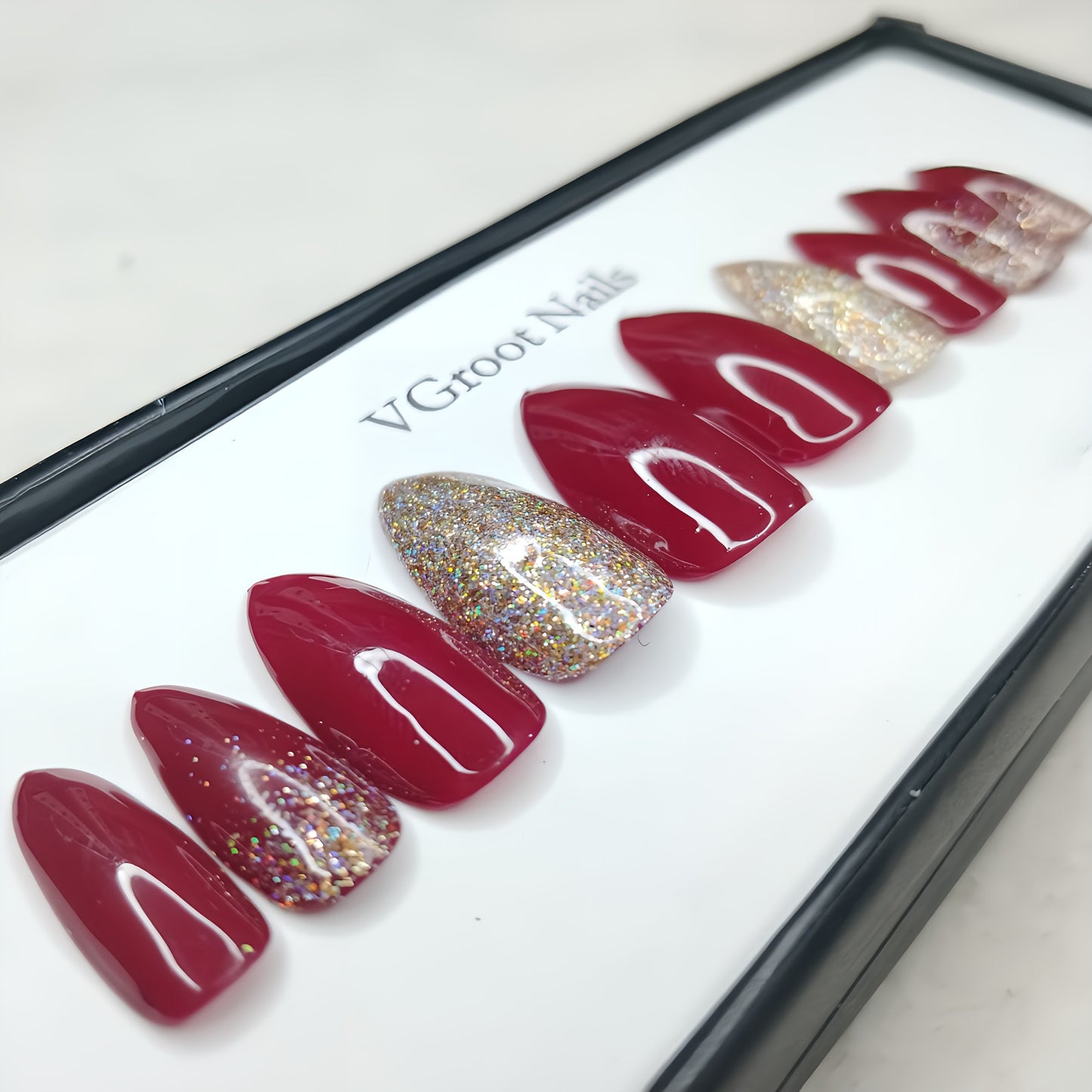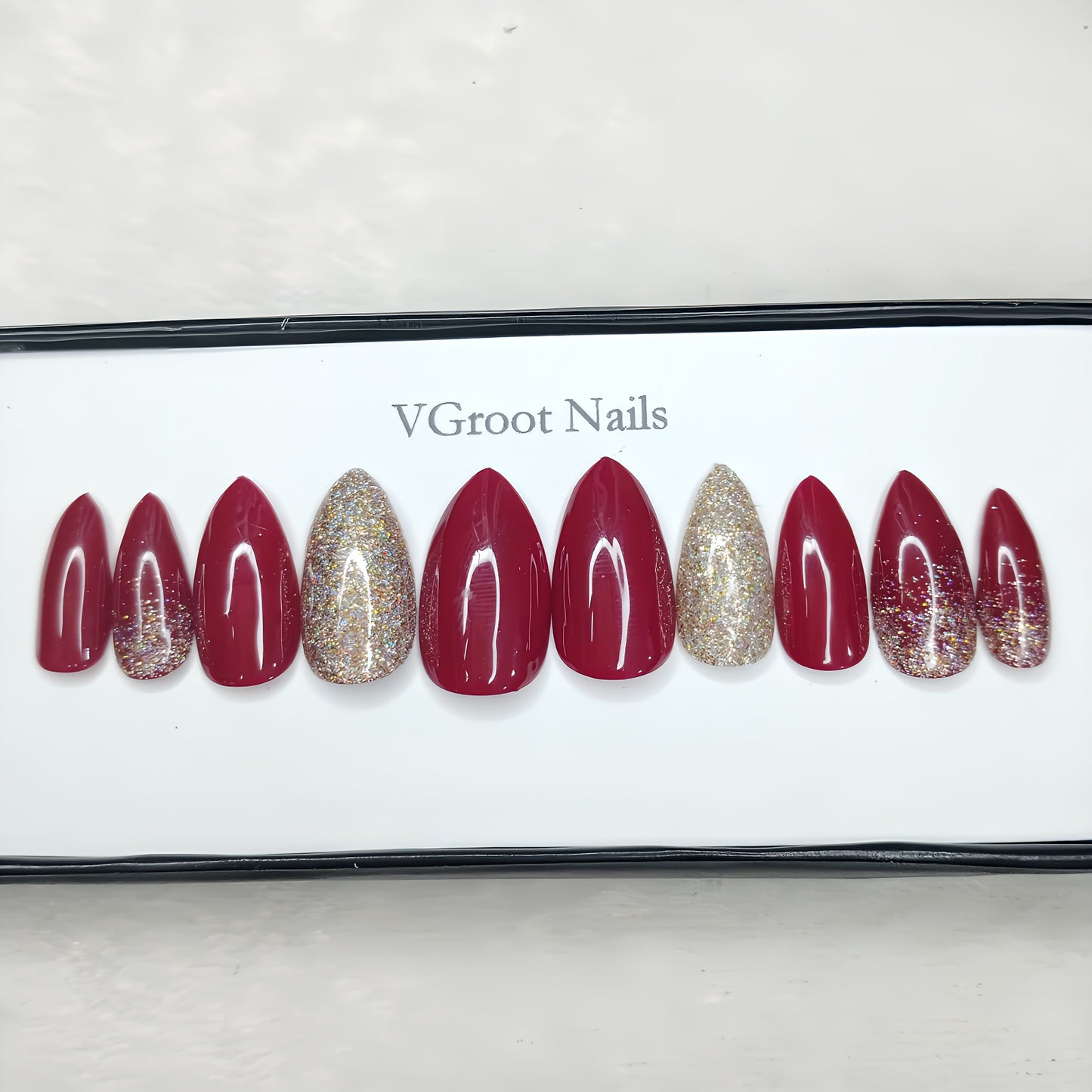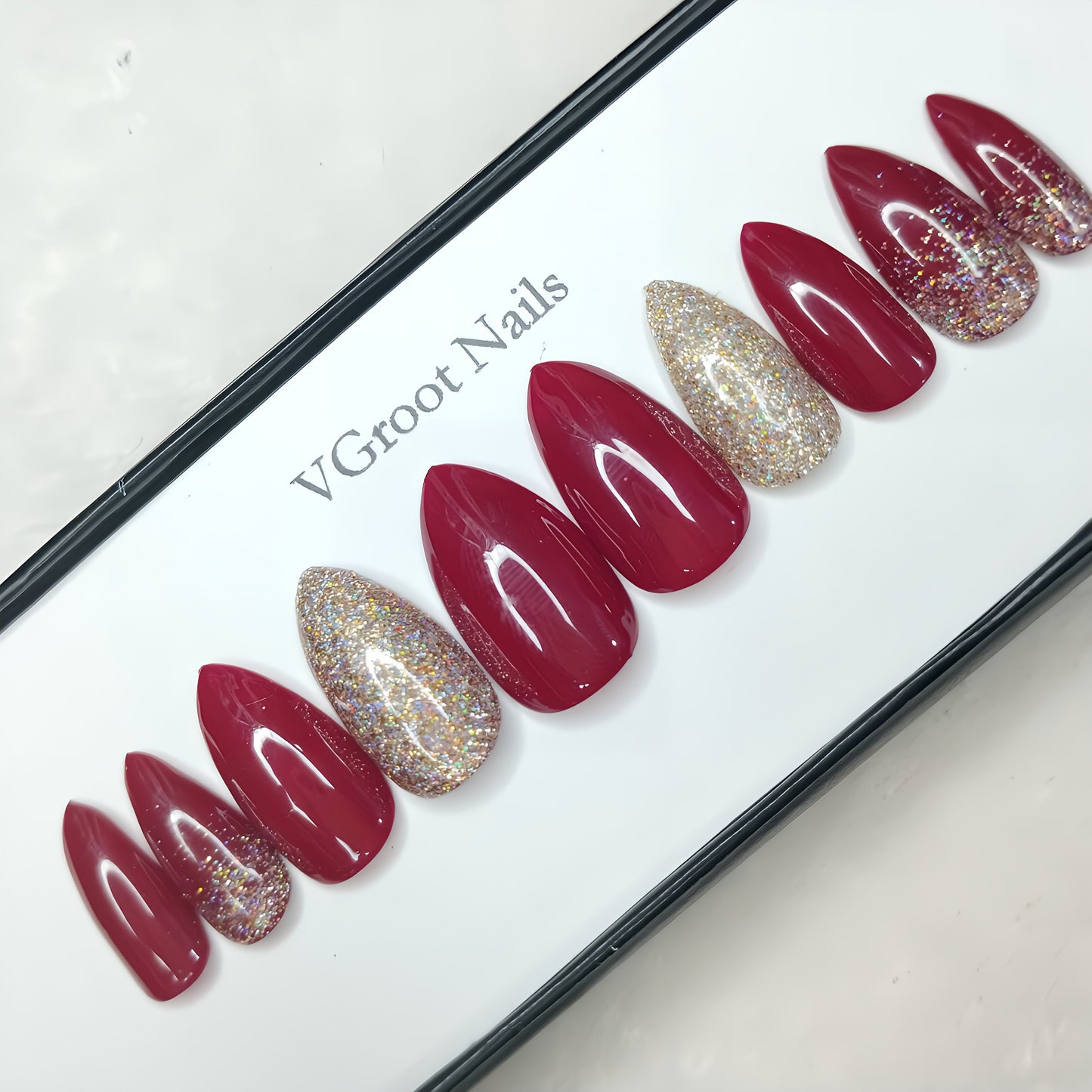 The NailzStation Glossy Maroon Glitter Ombre Press on Fake Artificial Nails Set with glue, filer, sticker application kit // 1137