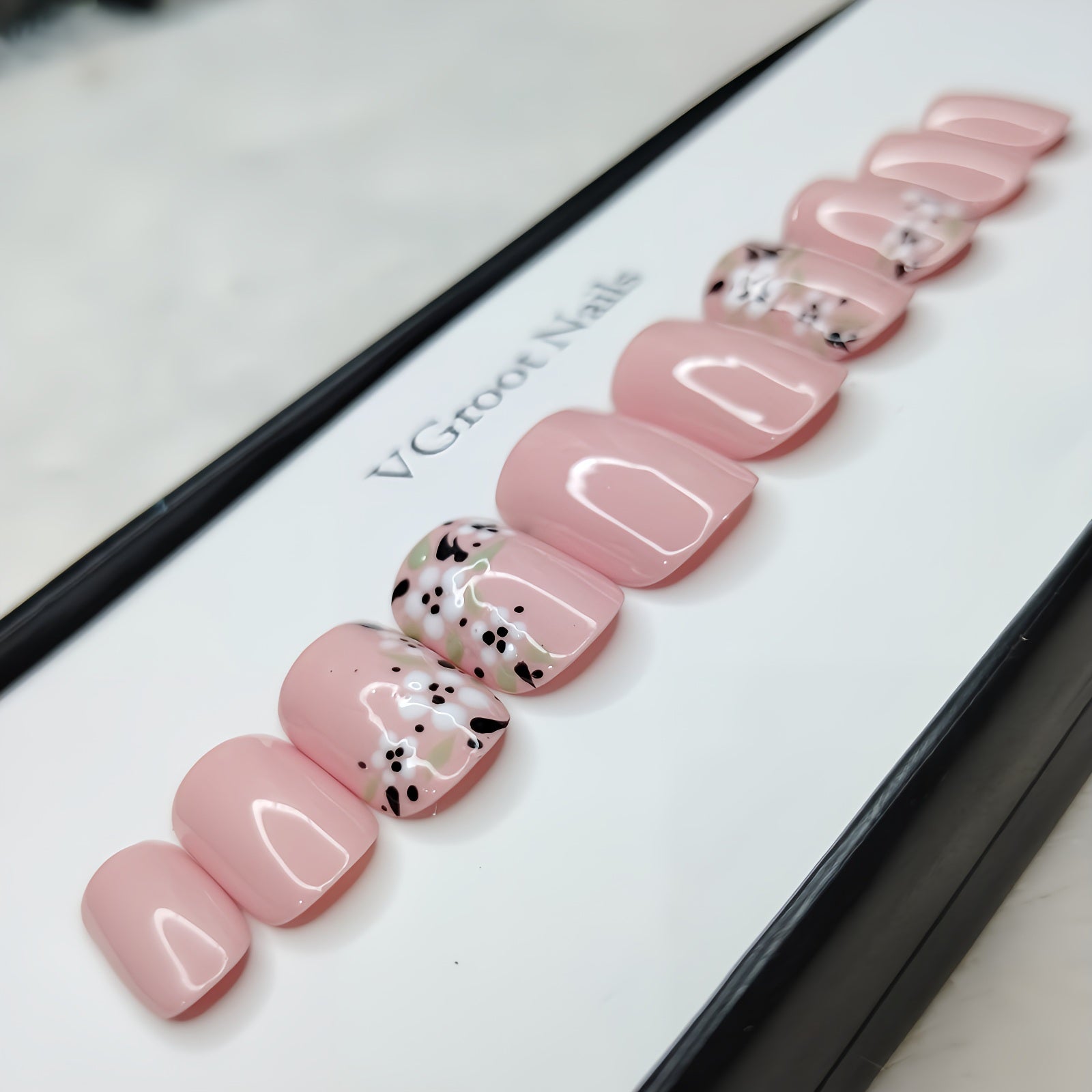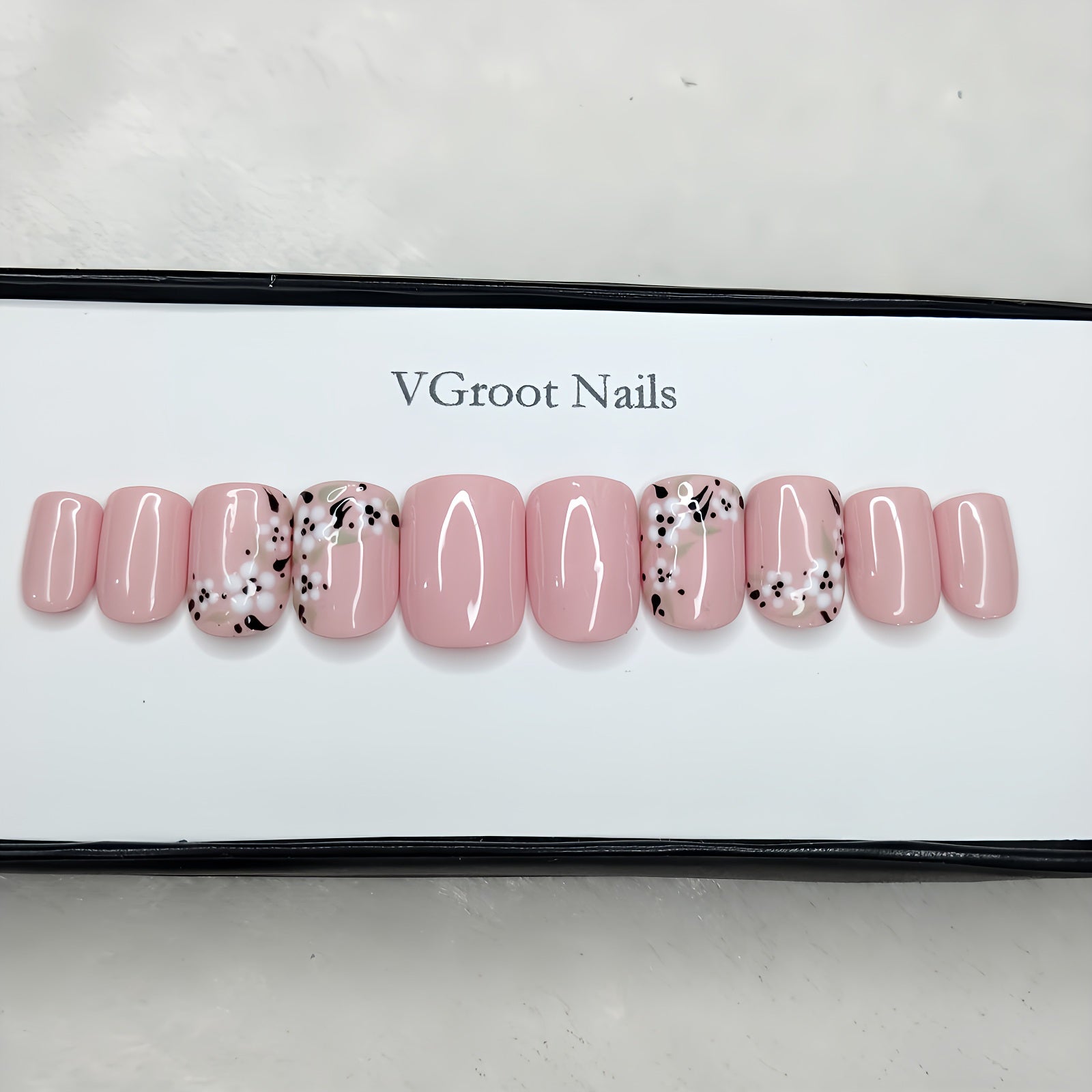 The NailzStation Glossy Nude Floral Press on Fake Artificial Nails Set with glue, filer, sticker application kit // 1031