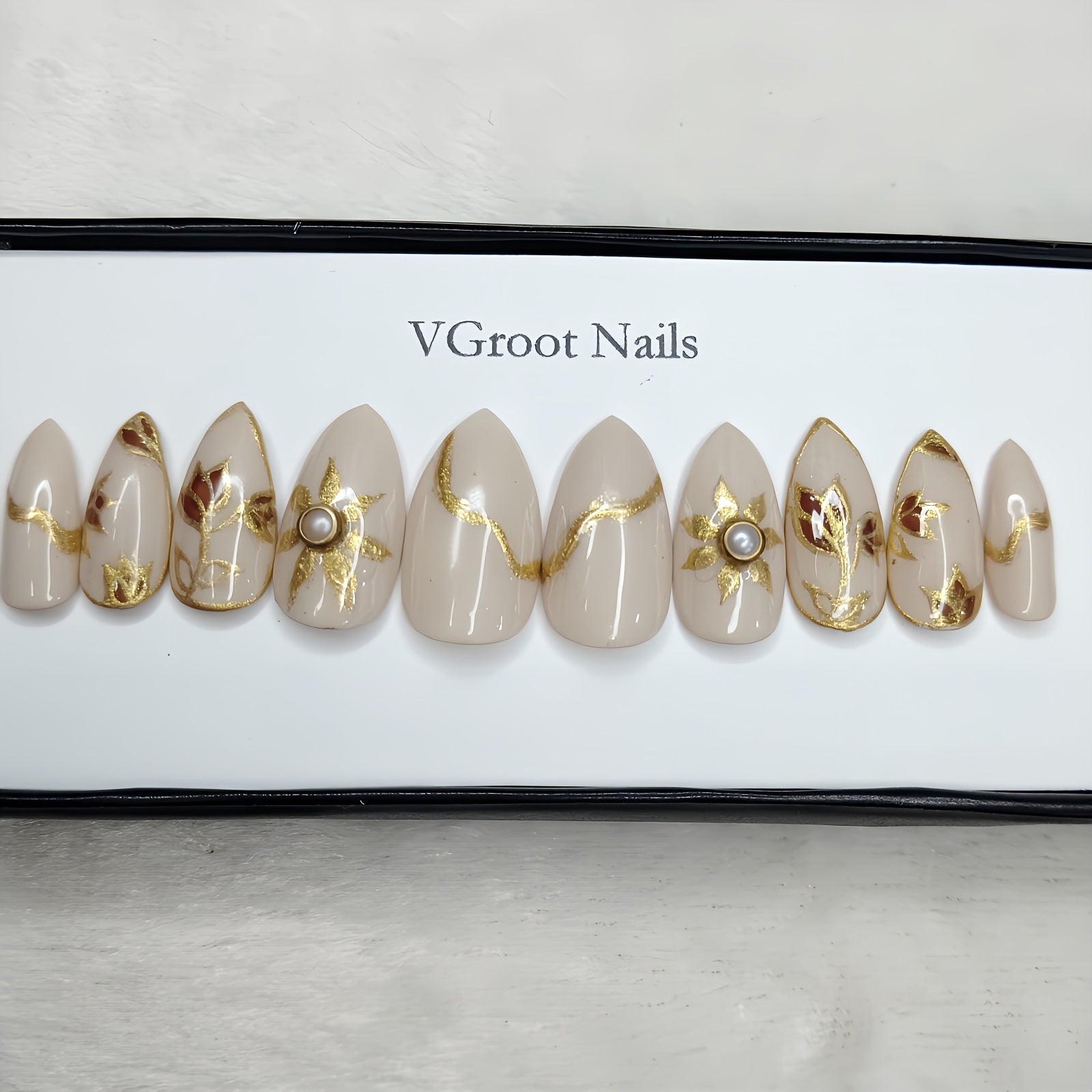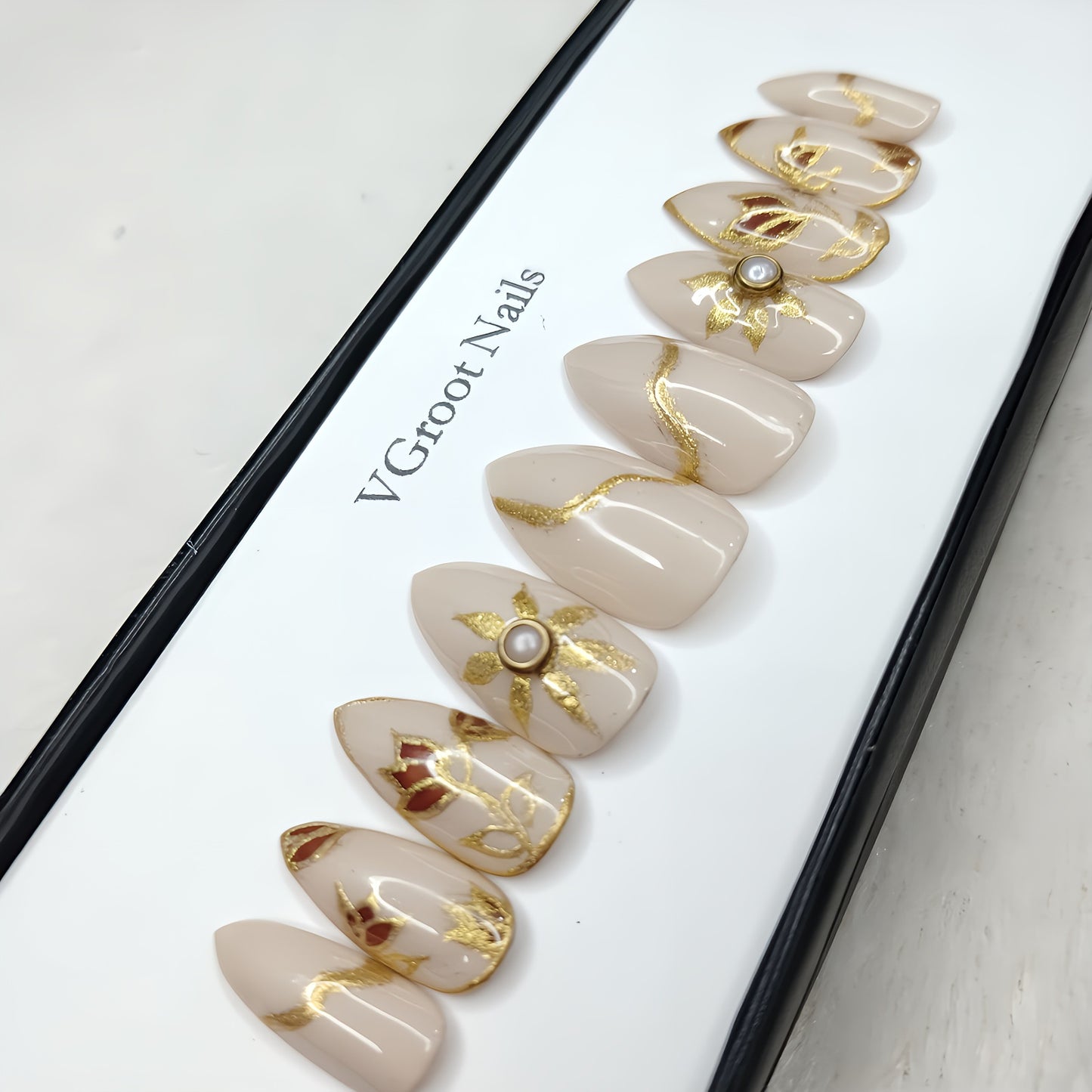 The NailzStation Glossy Nude Printed 3D Press on Fake Artificial Nails Set with glue, filer, sticker application kit // 1138