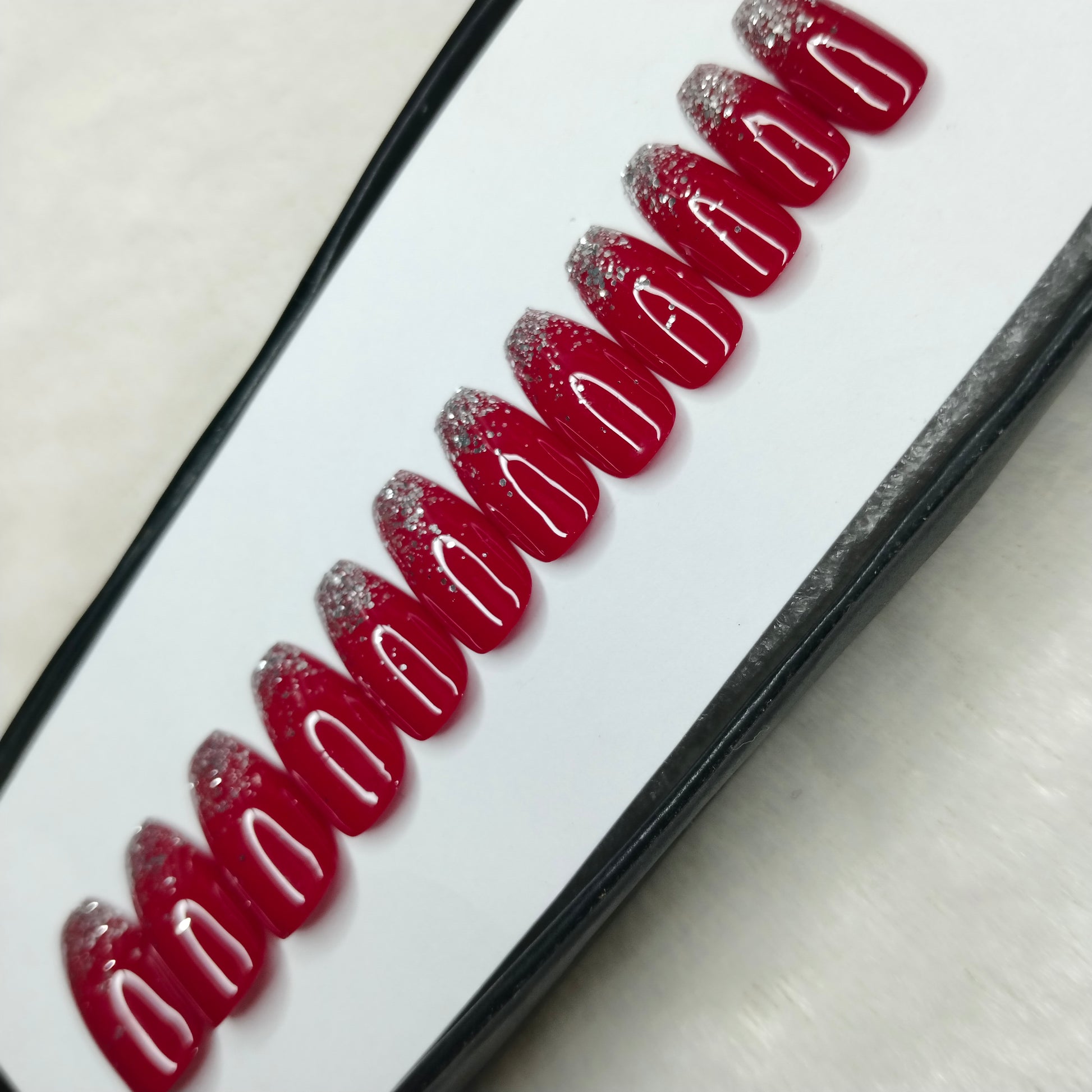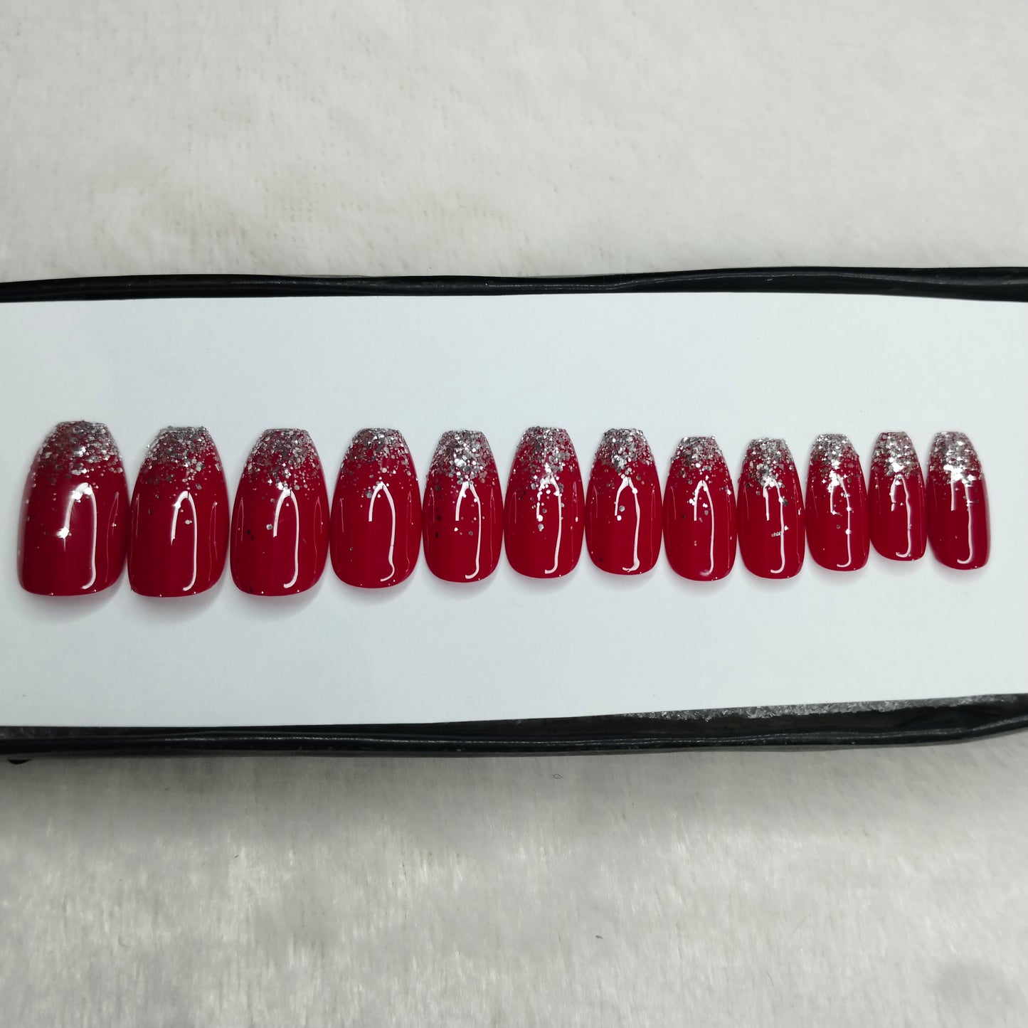 The NailzStation Glossy Pink Glitter Ombre Press on Fake Artificial Nails Set with glue, filer, sticker application kit // 1429