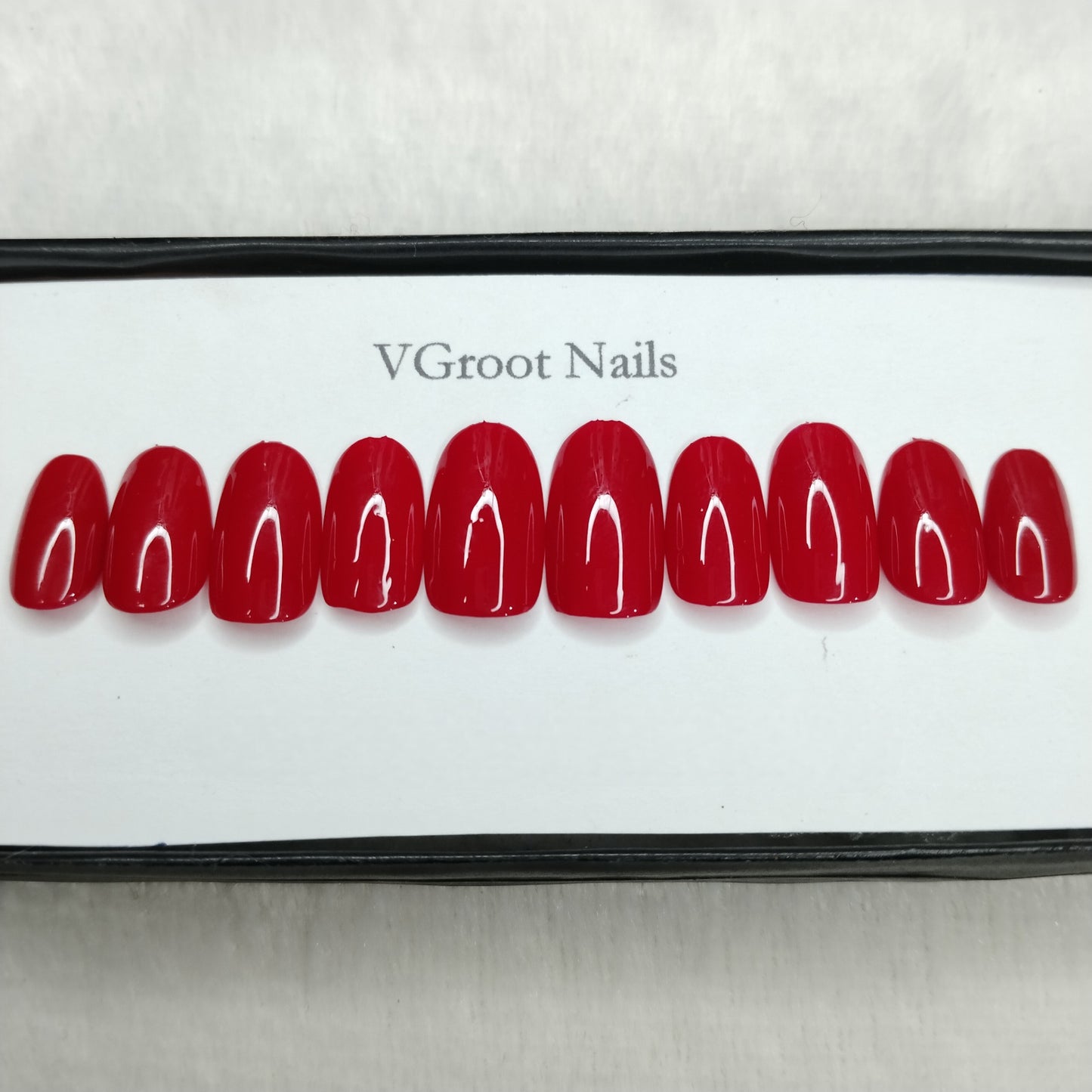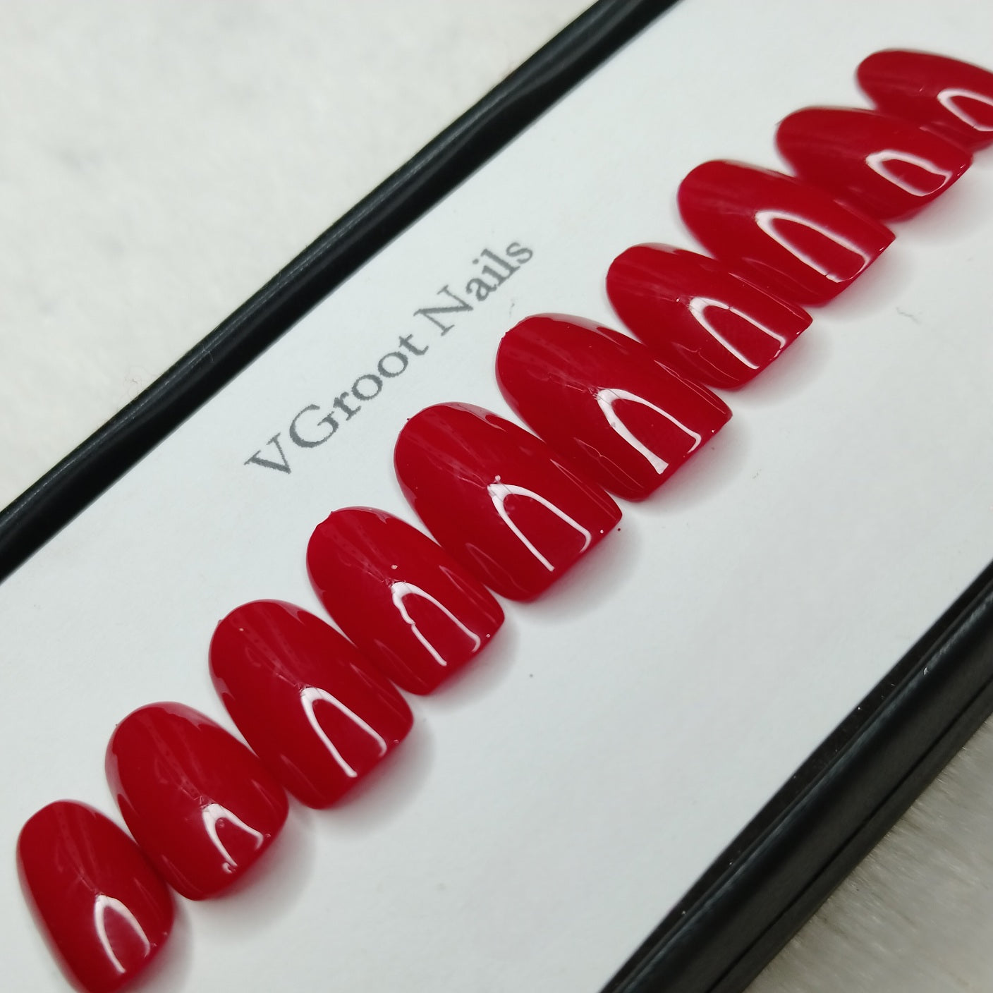 The NailzStation Glossy Plain Red Press on Fake Artificial Nails Set with glue, filer, sticker application kit // 1090