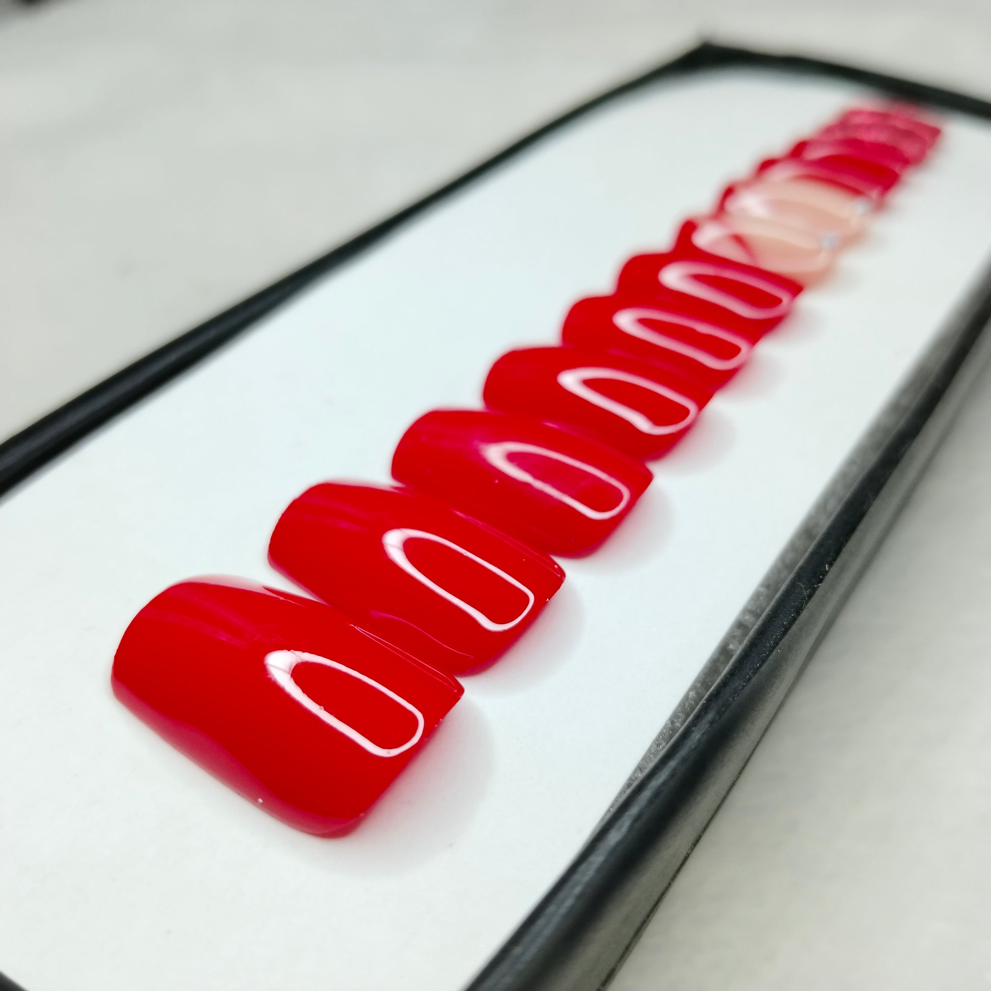 The NailzStation Glossy Red French Press on Fake Artificial Nails Set with glue, filer, sticker application kit // 1209
