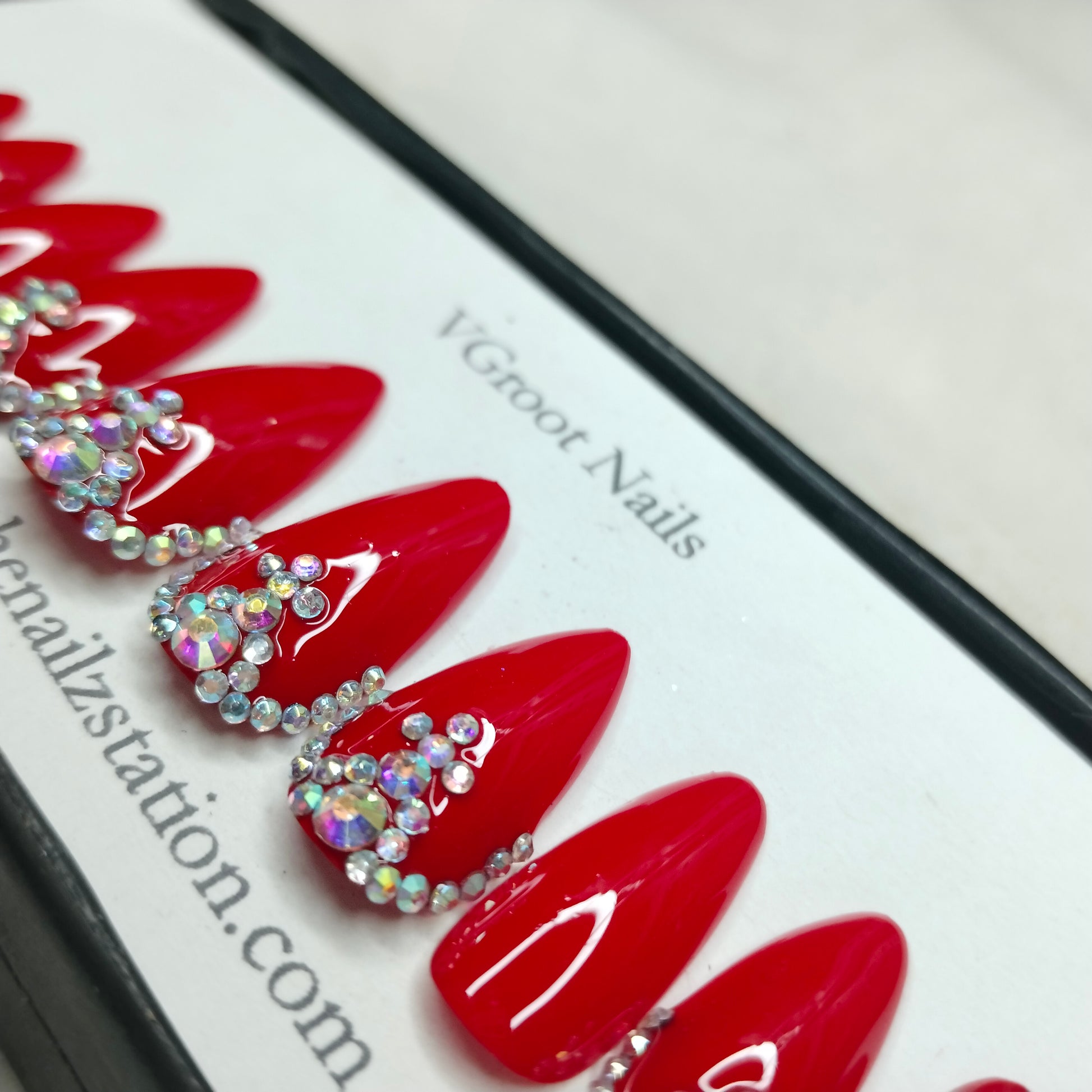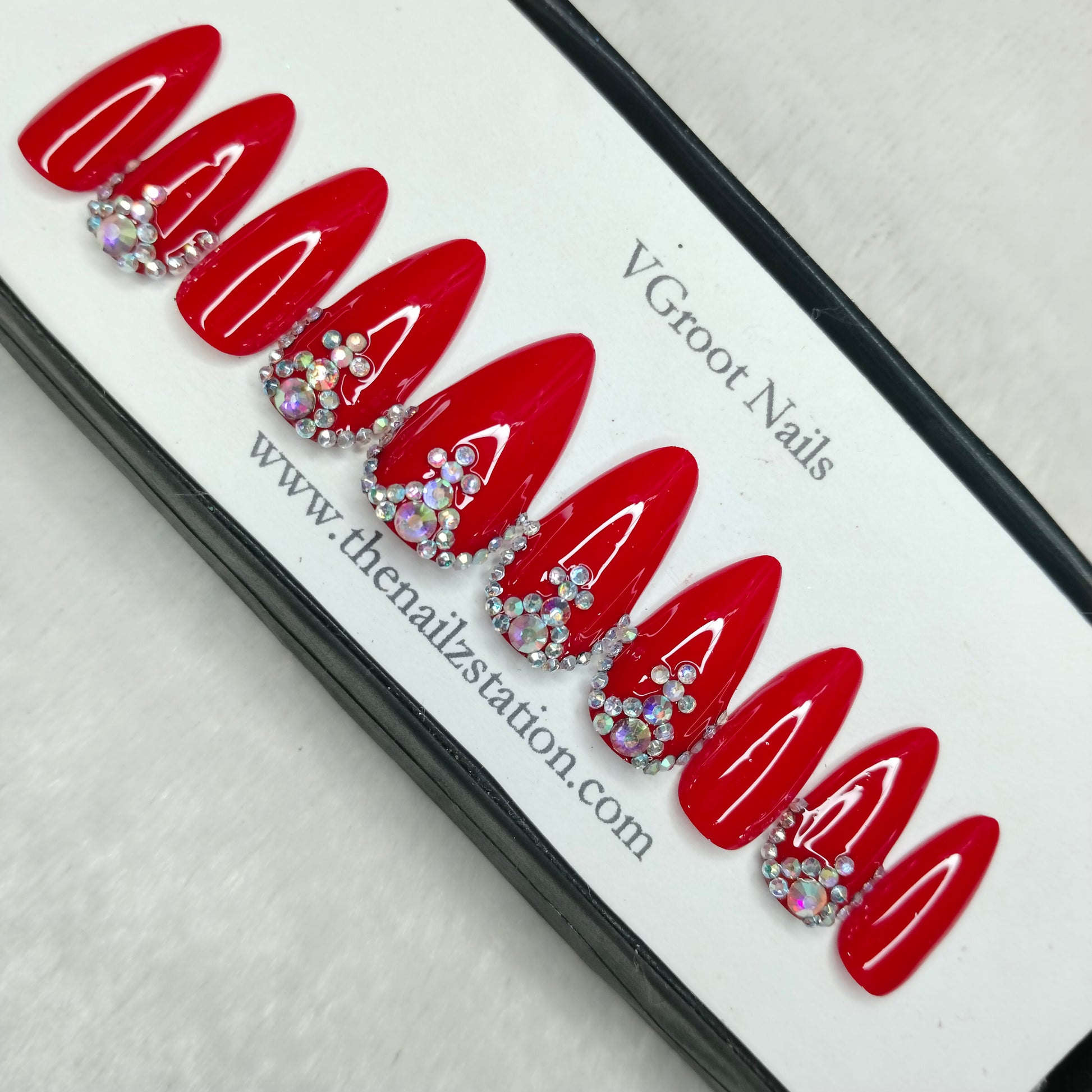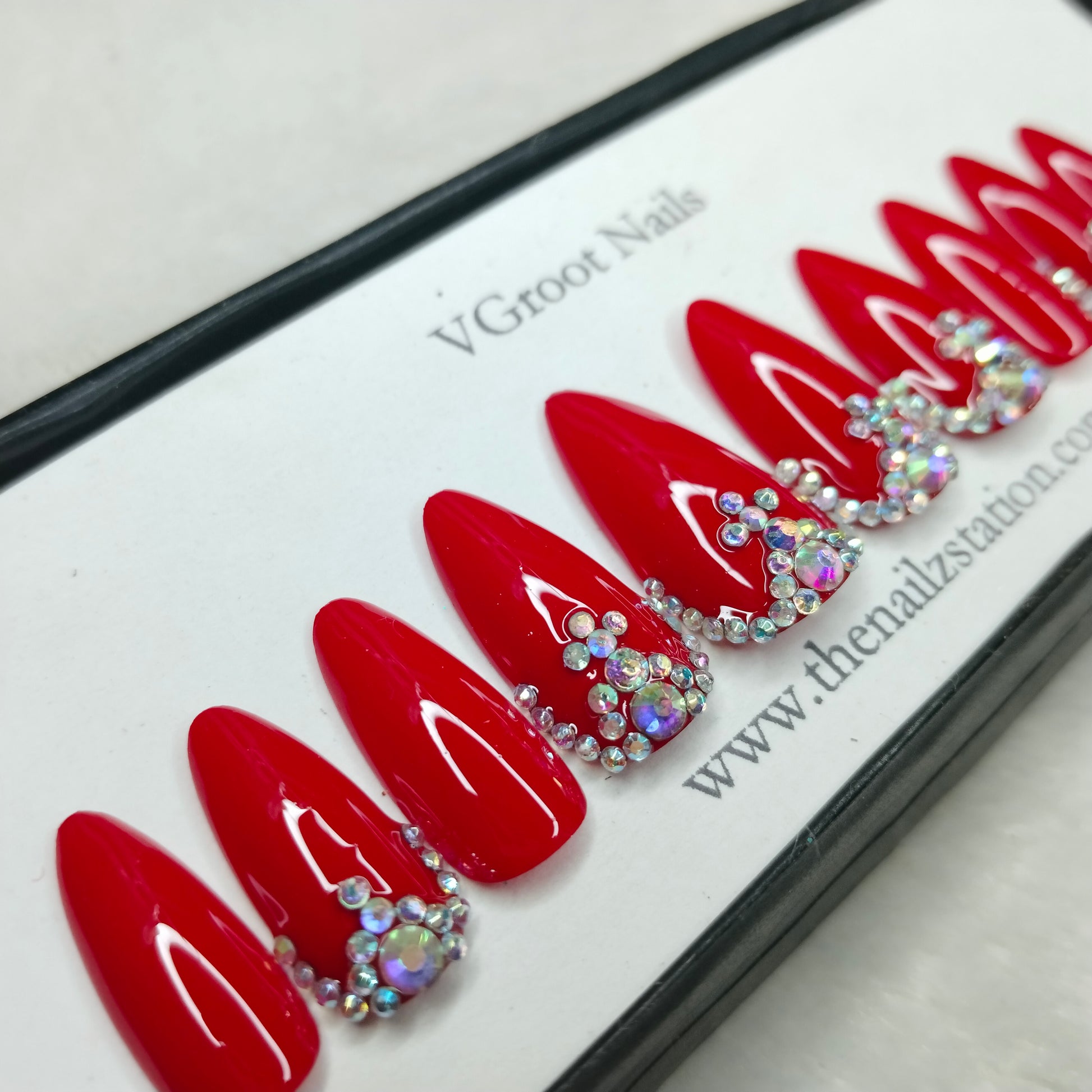 The NailzStation Glossy Red Studded Press on Fake Artificial Nails Set with glue, filer, sticker application kit // 1177