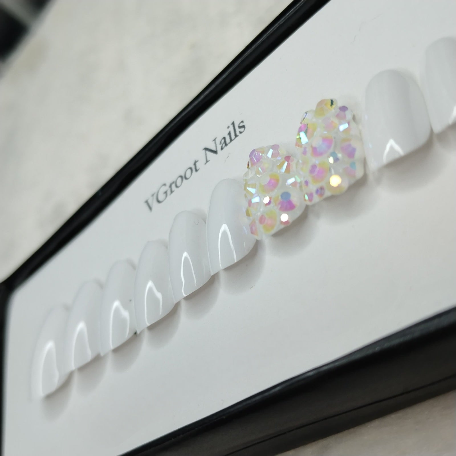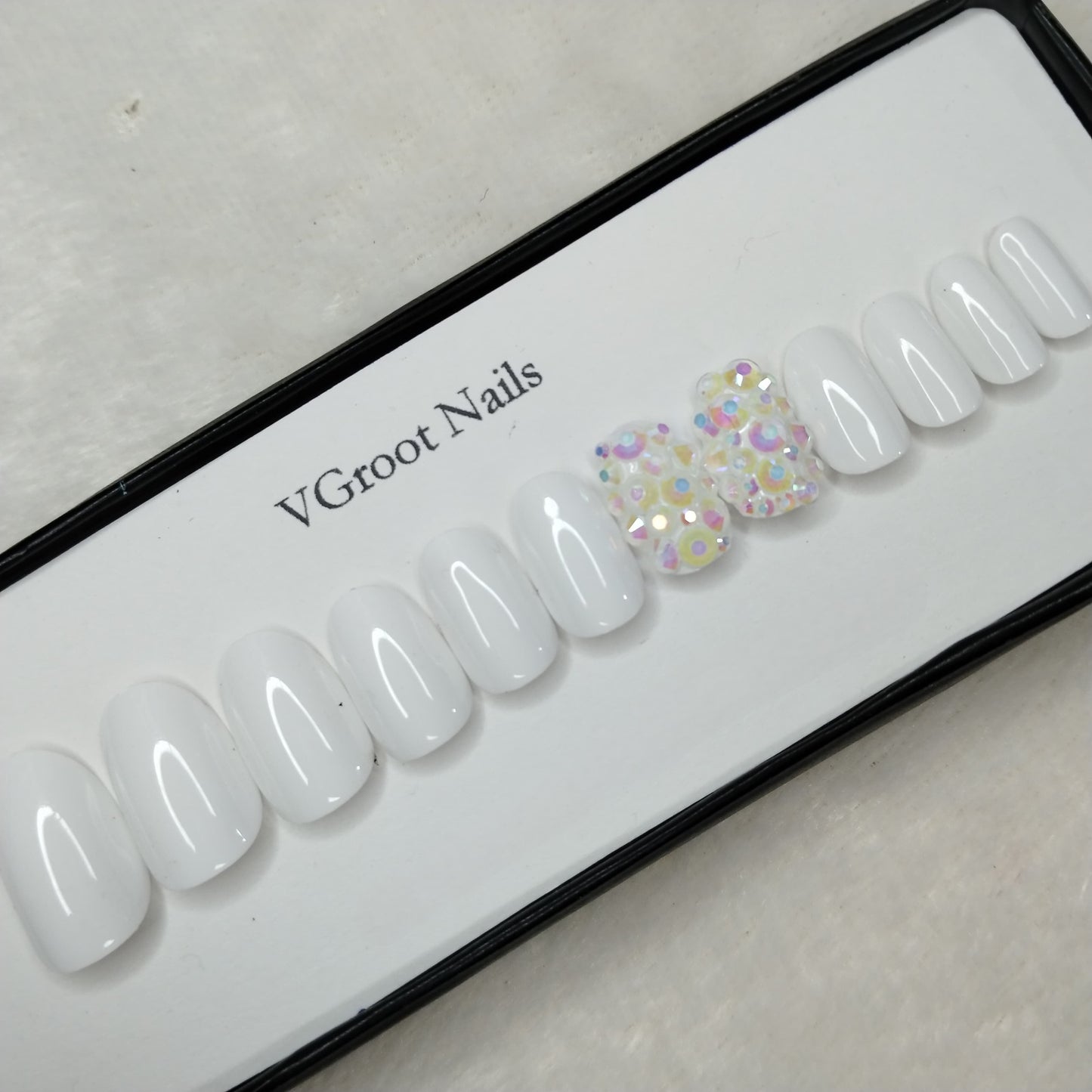 The NailzStation Glossy White Studded Press on Fake Artificial Nails Set with glue, filer, sticker application kit // 1129