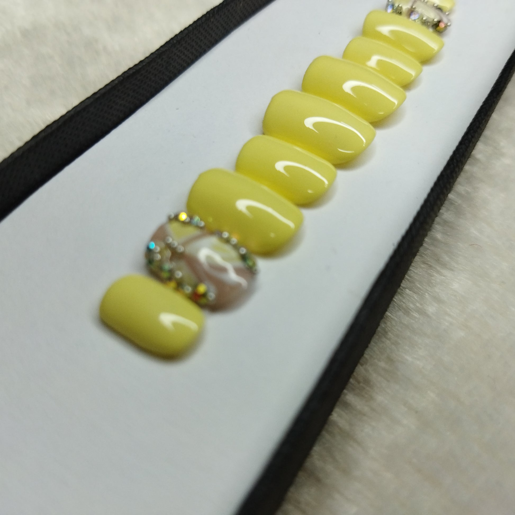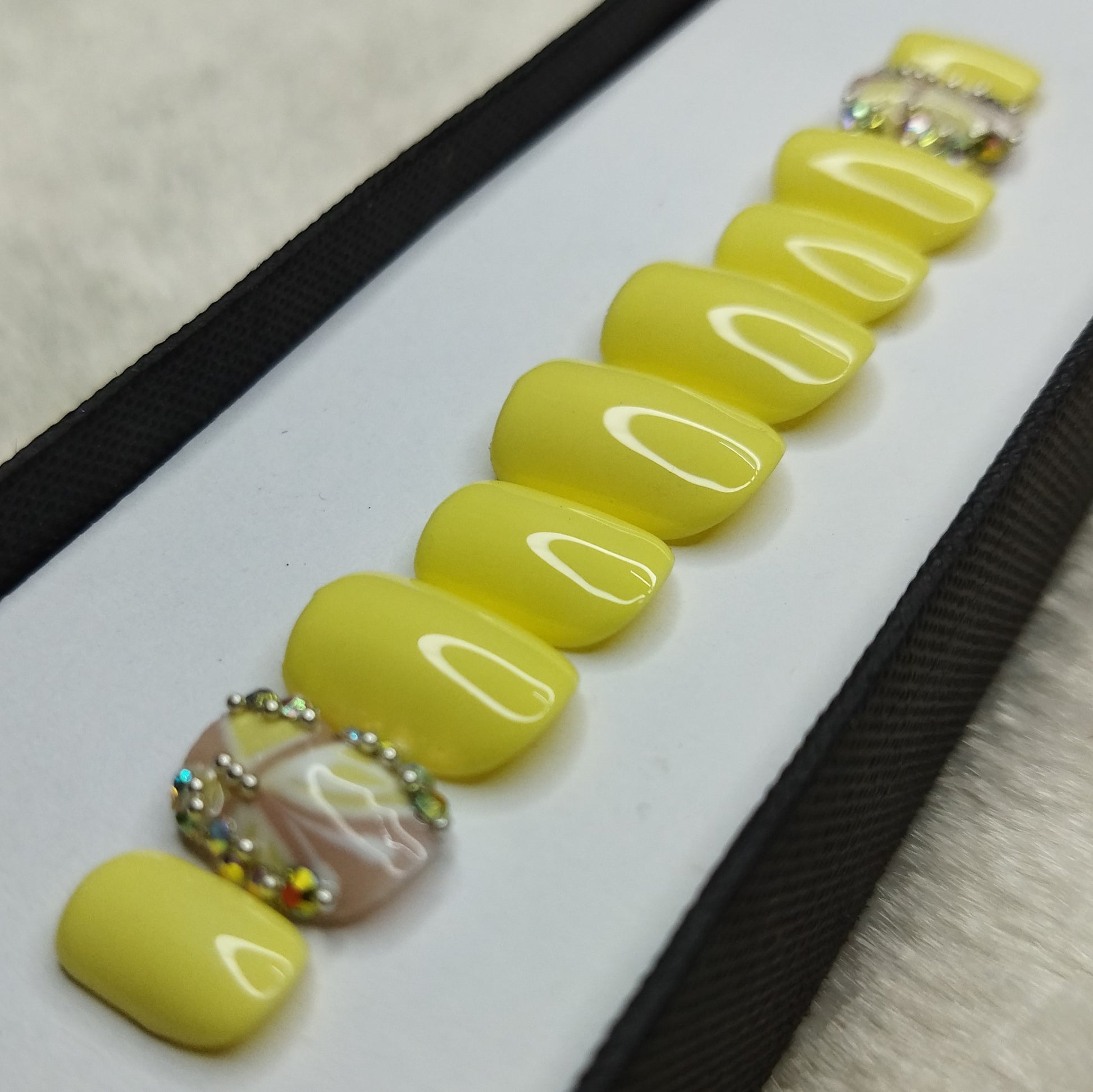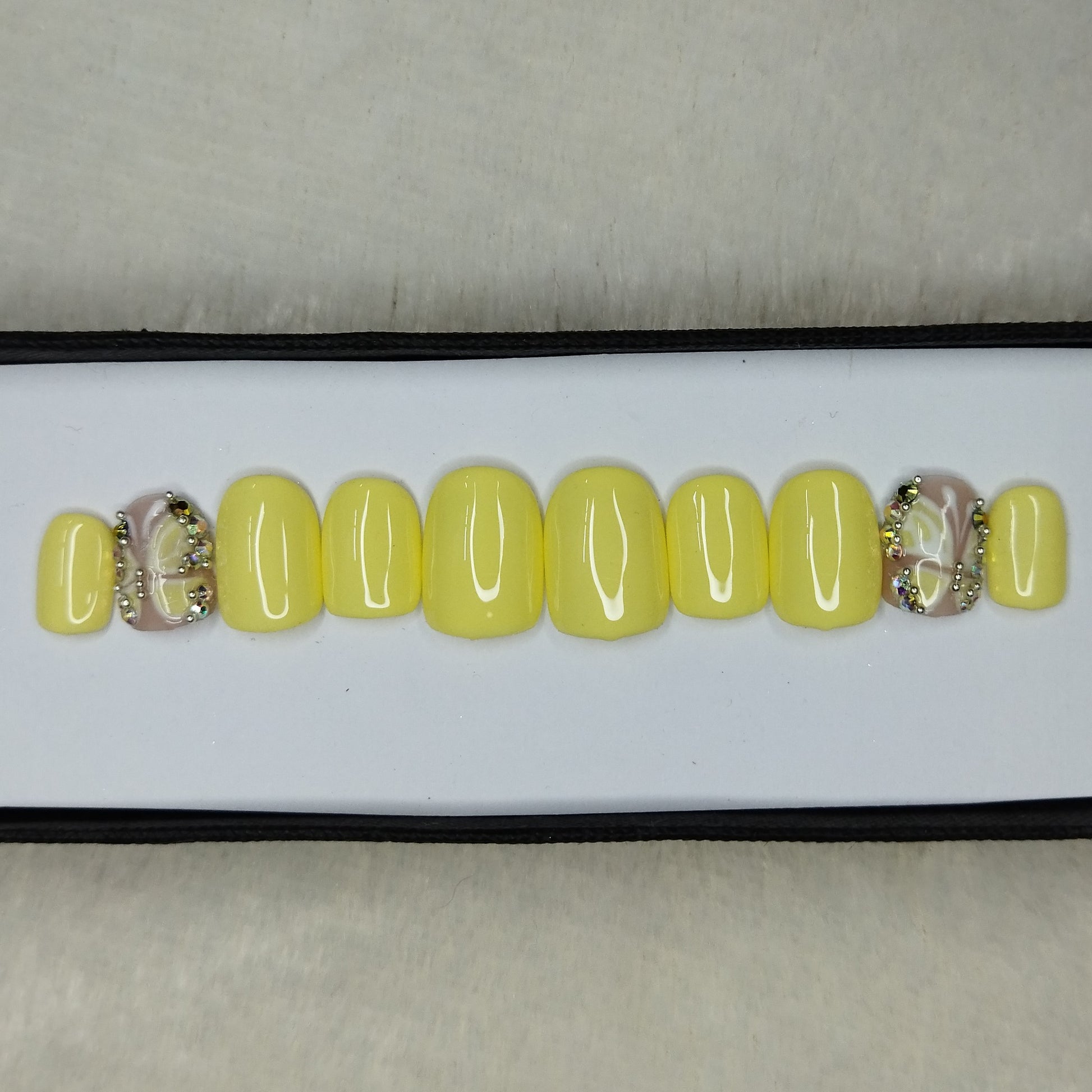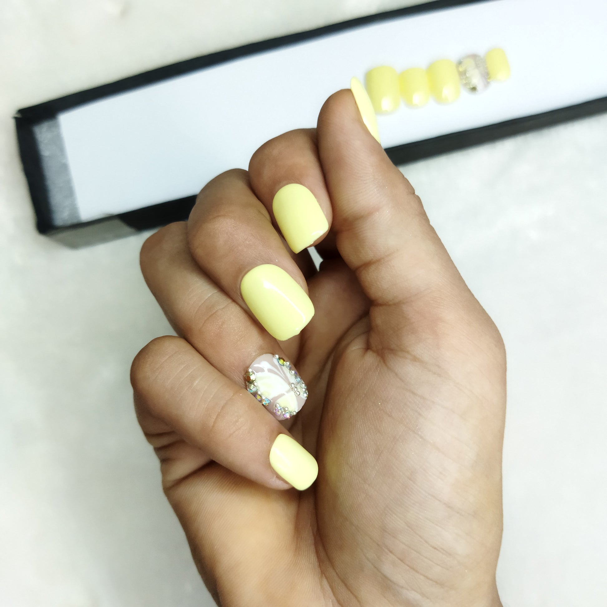 The NailzStation Glossy Yellow Butterflies Press on Fake Artificial Nails Set with glue, filer, sticker application kit // 1542
