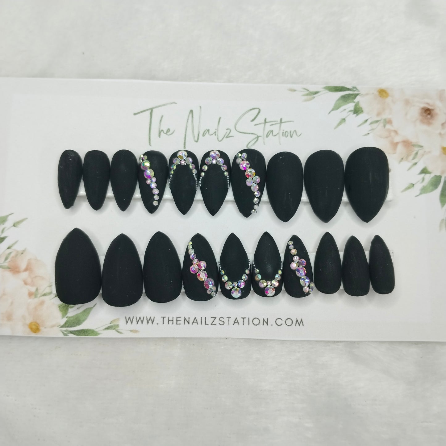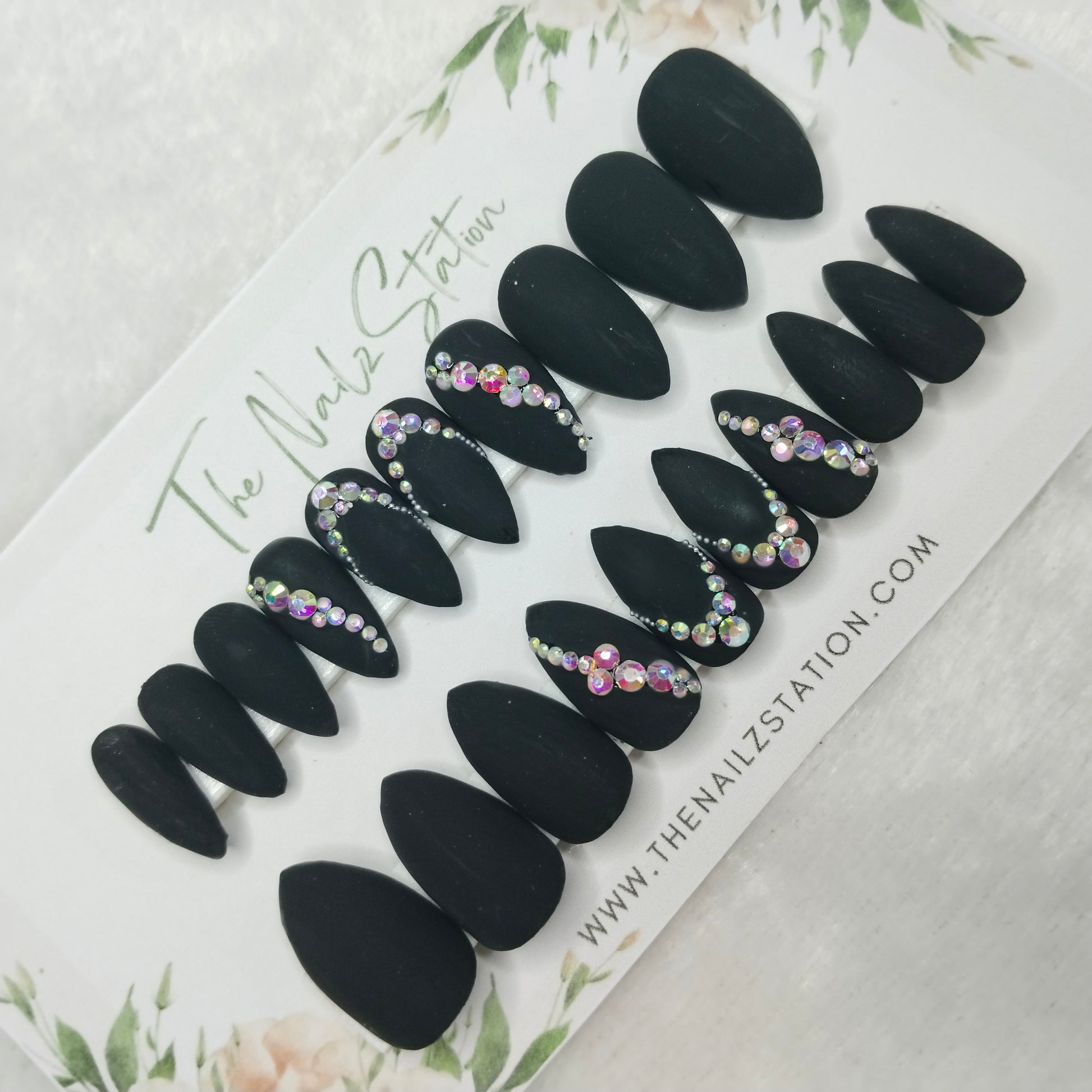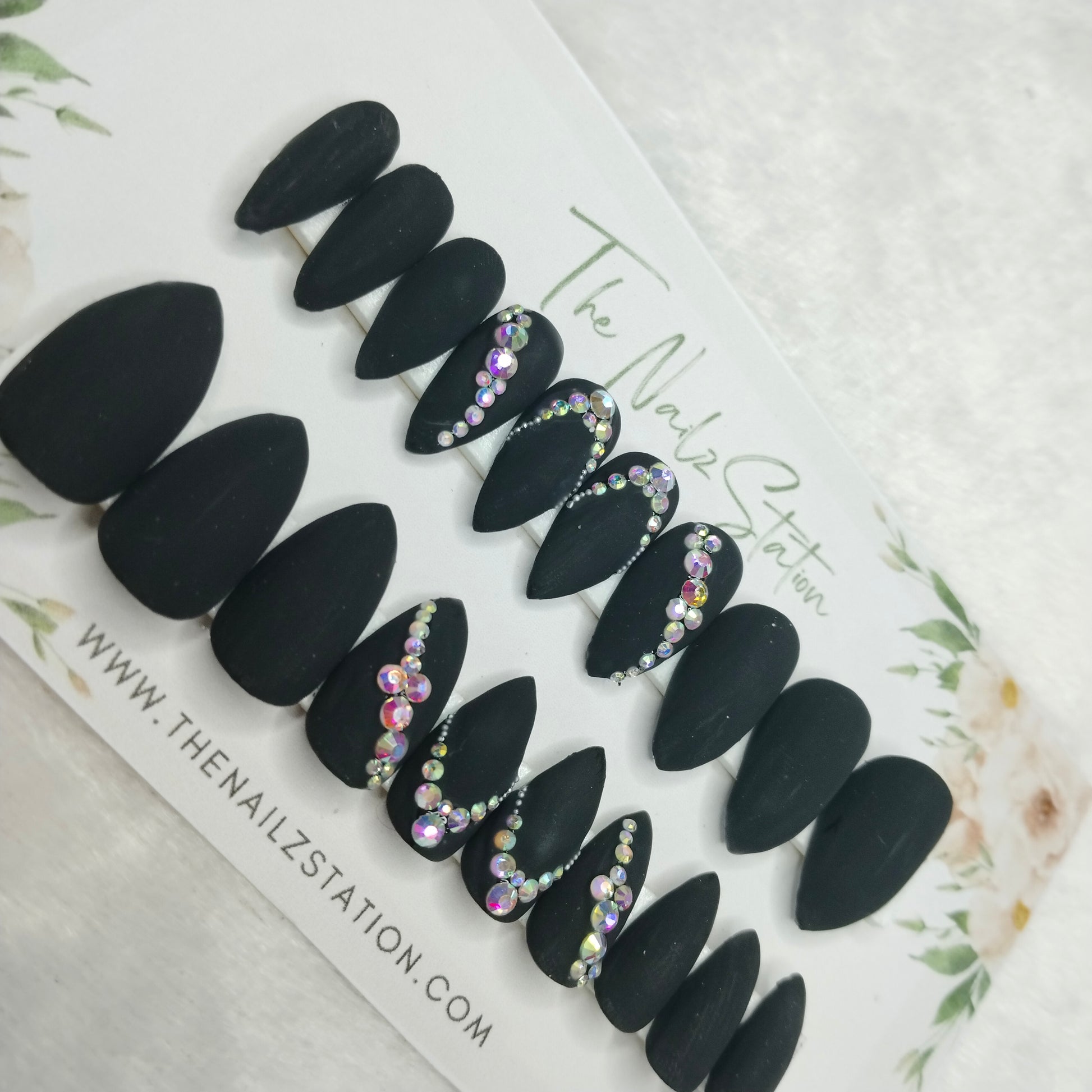 The NailzStation Matte Black Studded Press on Fake Artificial Nails Set with glue, filer, sticker application kit // 1397