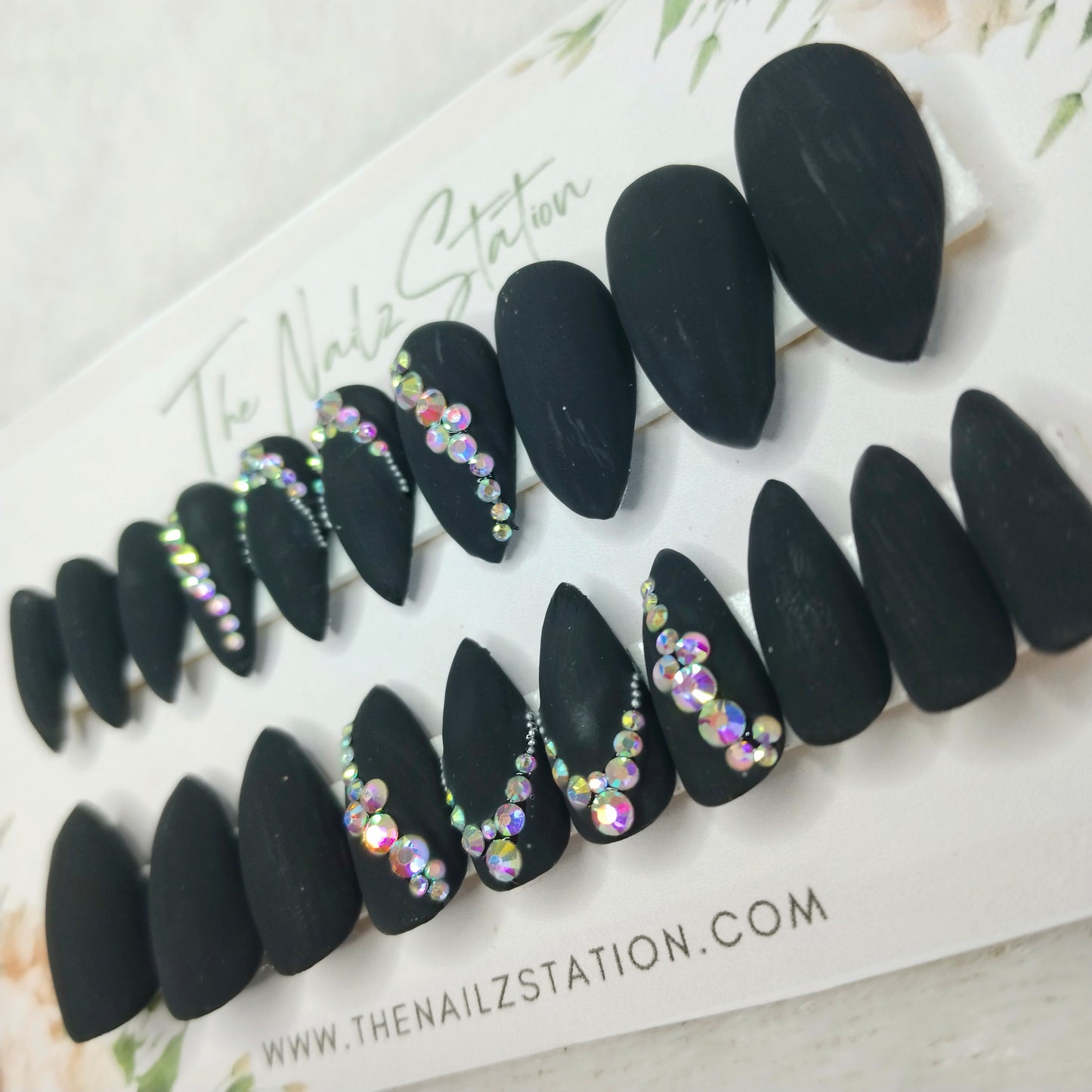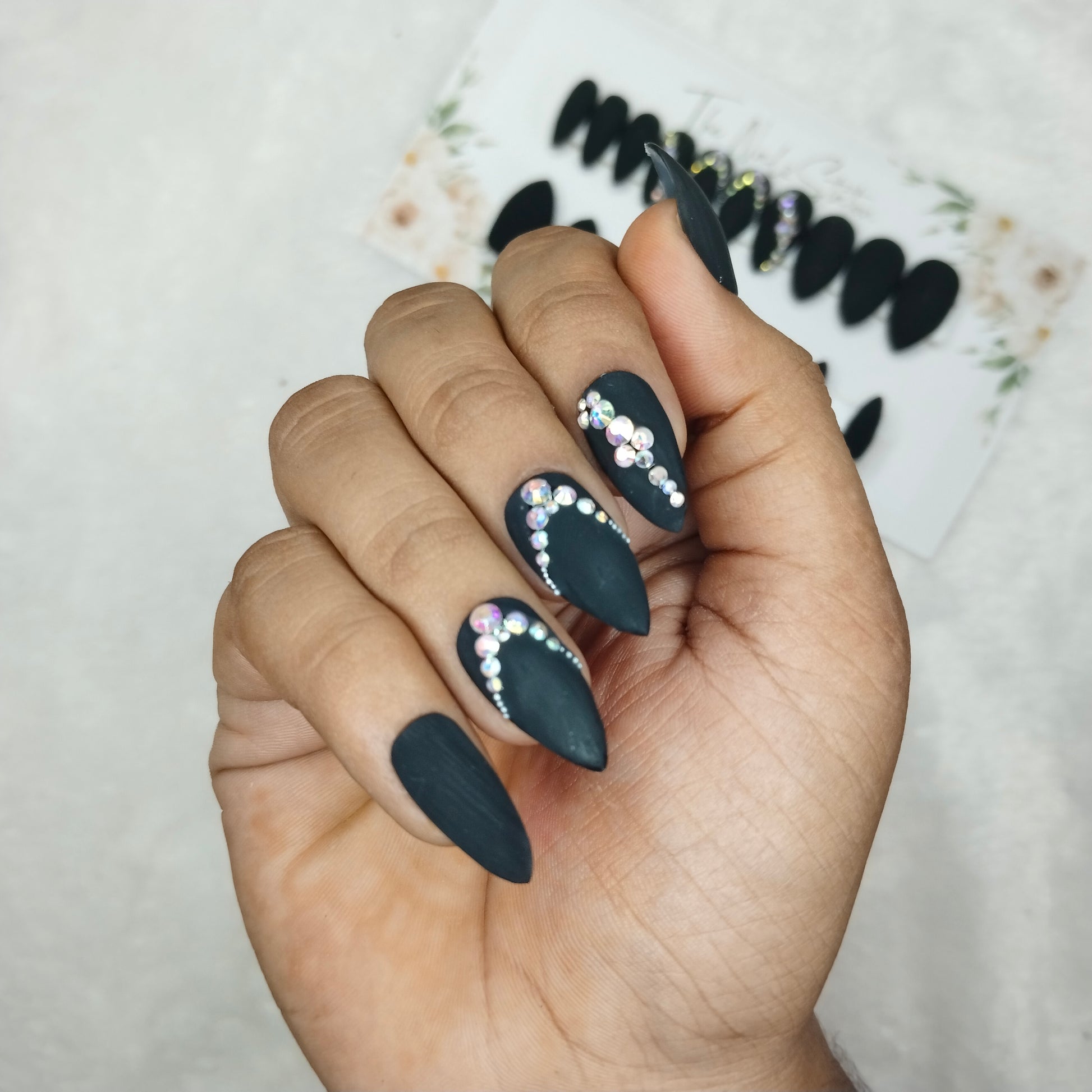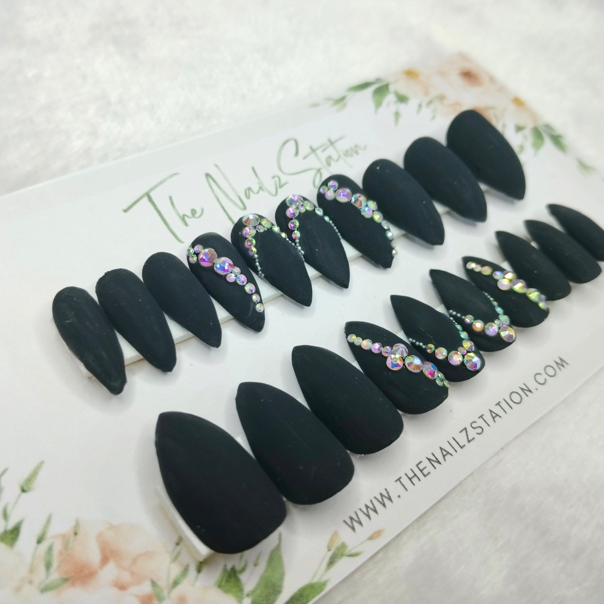 The NailzStation Matte Black Studded Press on Fake Artificial Nails Set with glue, filer, sticker application kit // 1397
