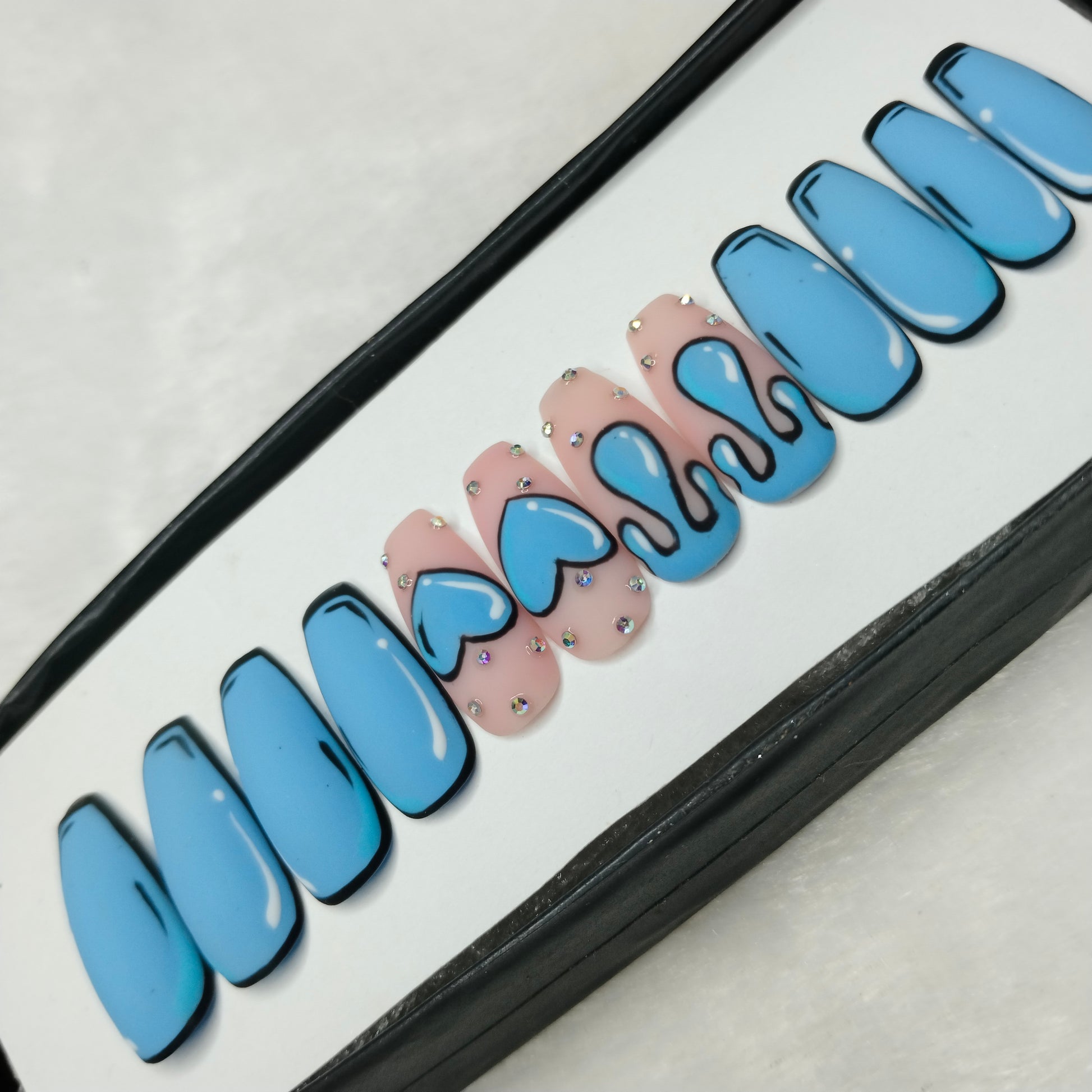 The NailzStation Matte Cartoon Hearts Press on Fake Artificial Nails Set with glue, filer, sticker application kit // 1236