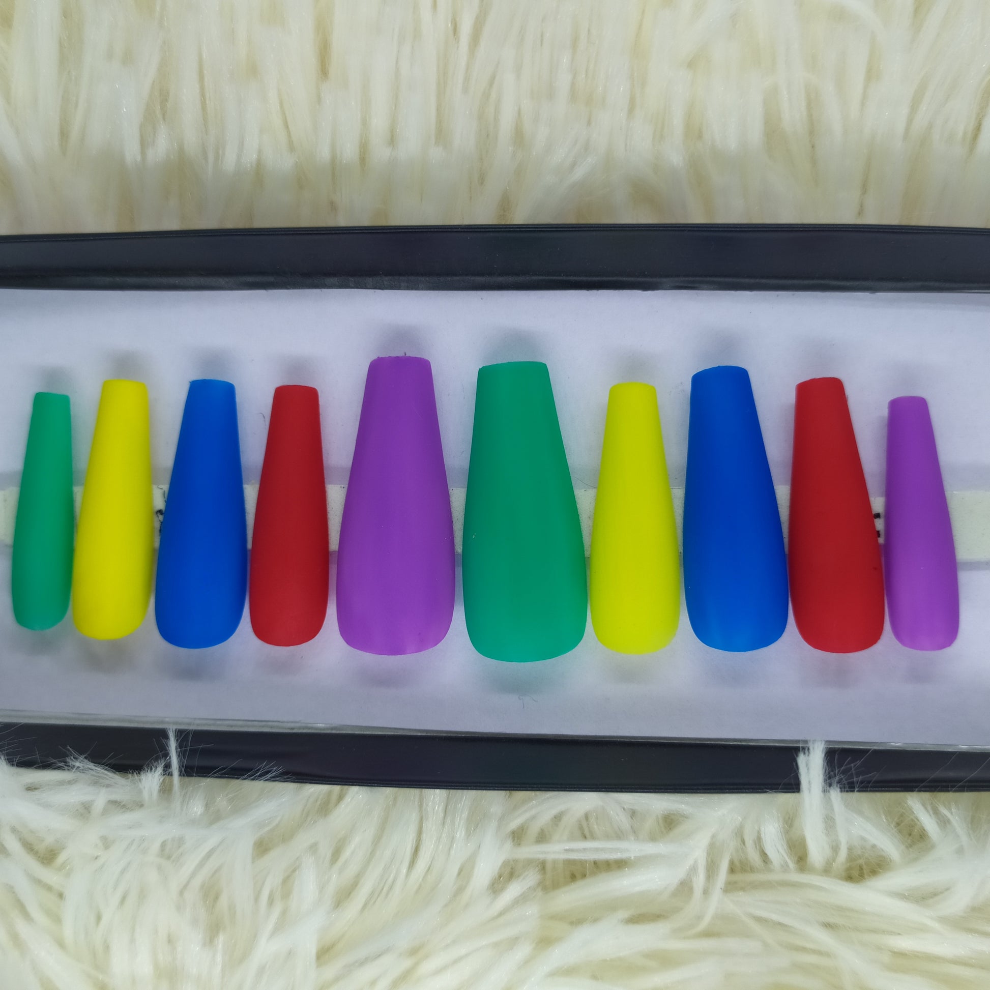 The NailzStation Matte Colorful Press on Fake Artificial Nails Set with glue, filer, sticker application kit // 1346