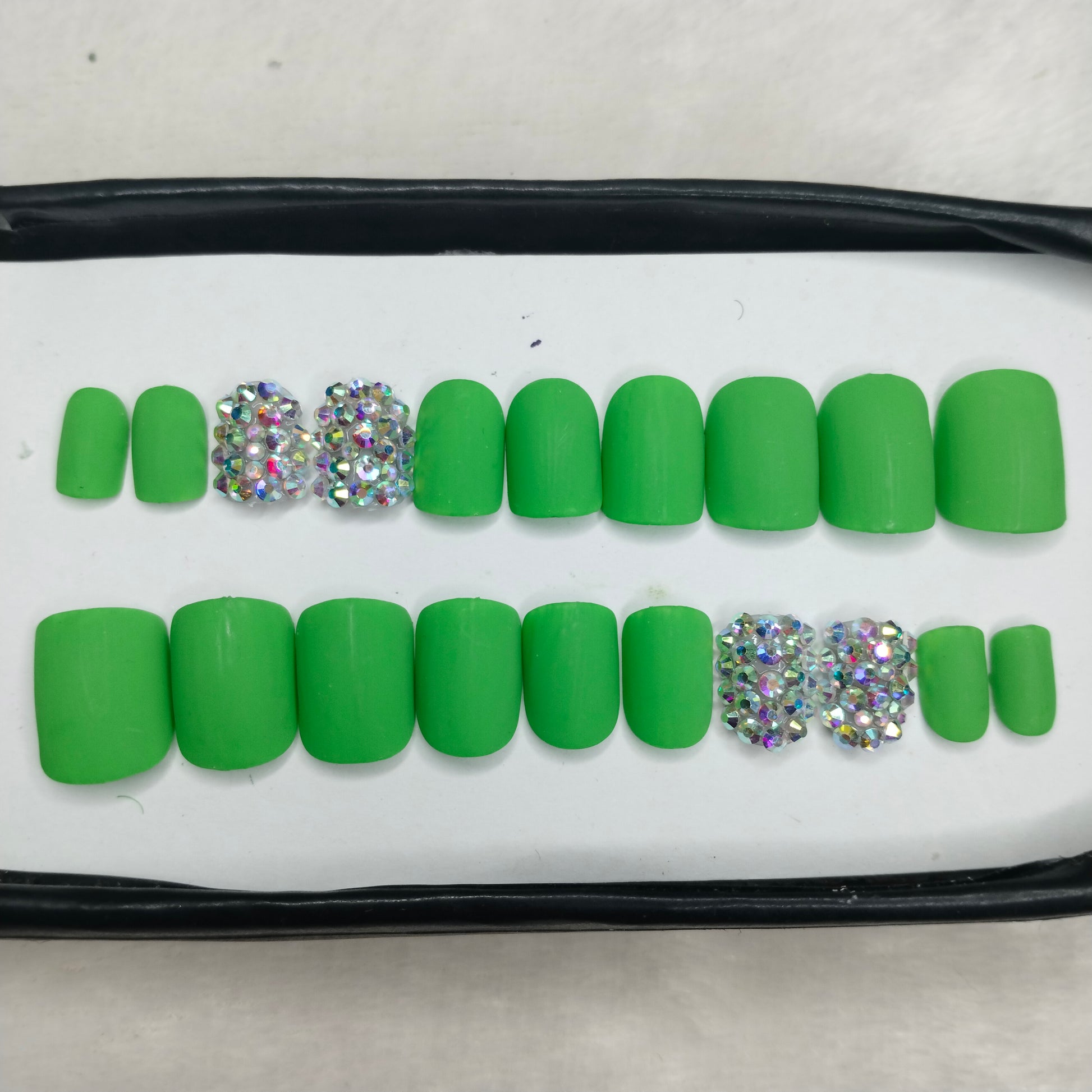 The NailzStation Matte Green Studded Press on Fake Artificial Nails Set with glue, filer, sticker application kit // 1436